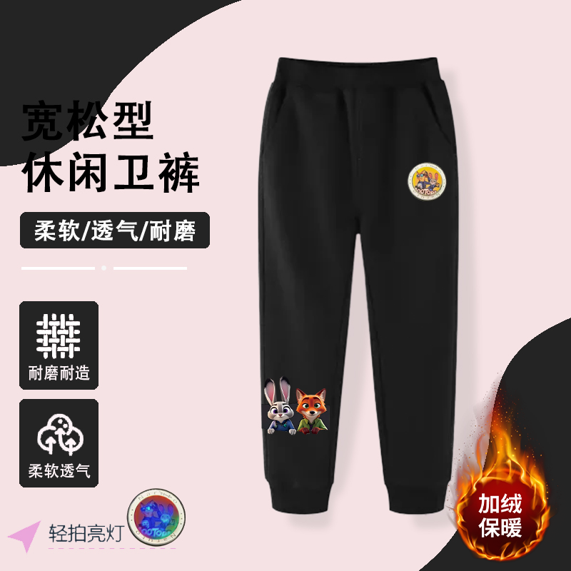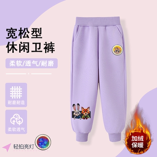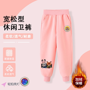 子女装 猫咪加绒加厚休闲卫裤 秋冬季 新款 大码 亚文化阔腿运动裤 美式