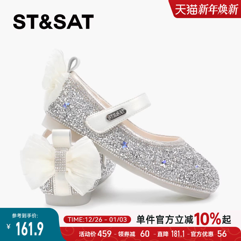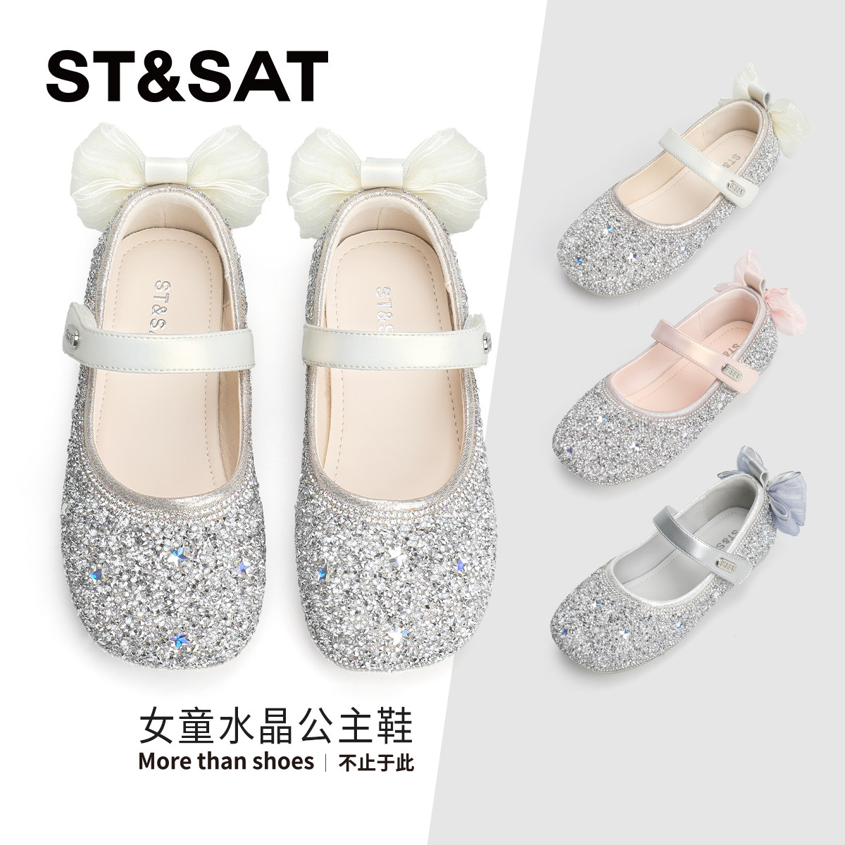 新款 女生春季 蝴蝶结水晶鞋 女演出鞋 星期六童鞋 儿童轻便单鞋 公主鞋