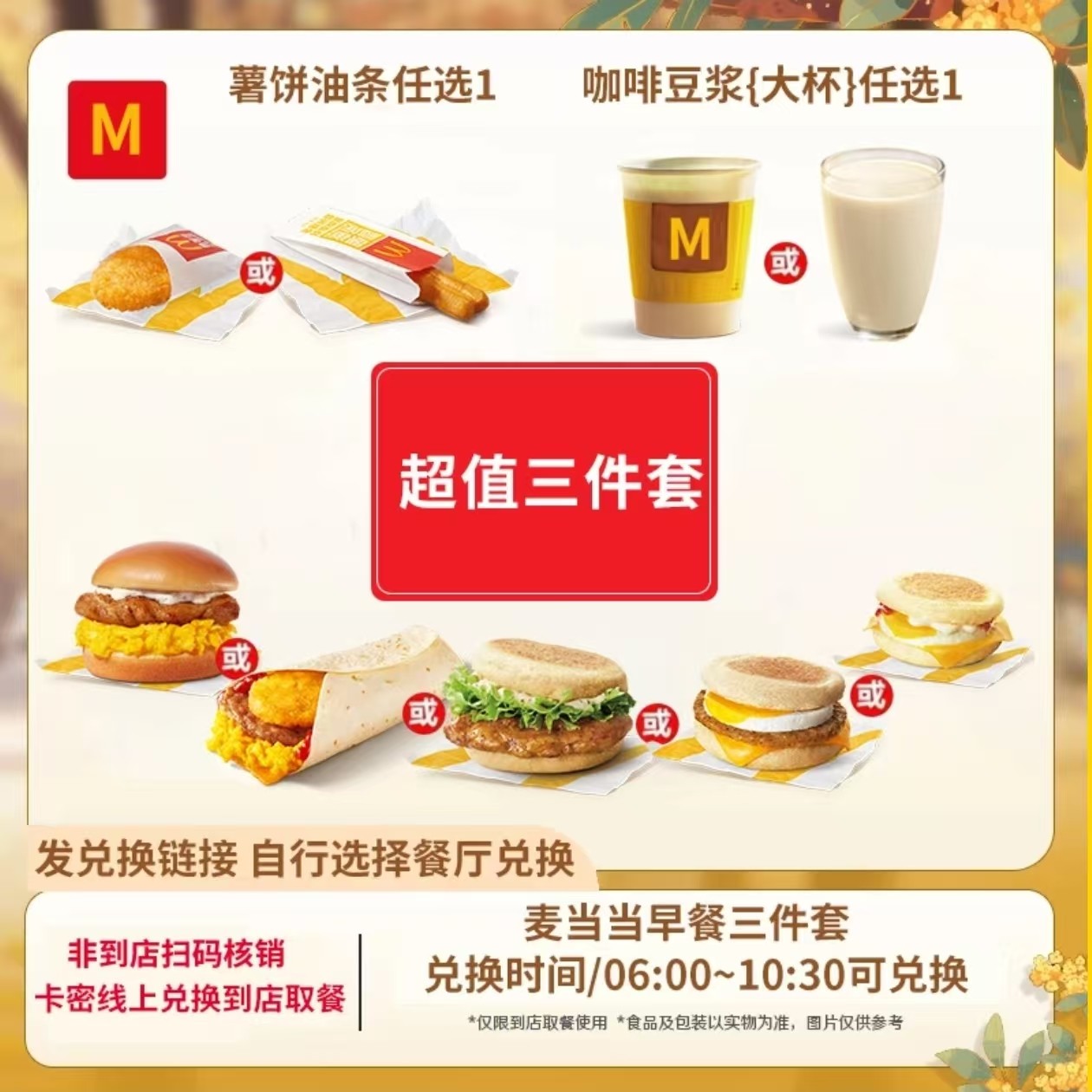 麦当劳早餐代下单有牛有菇吉士猪柳火腿板烧麦满分套餐优惠券全国