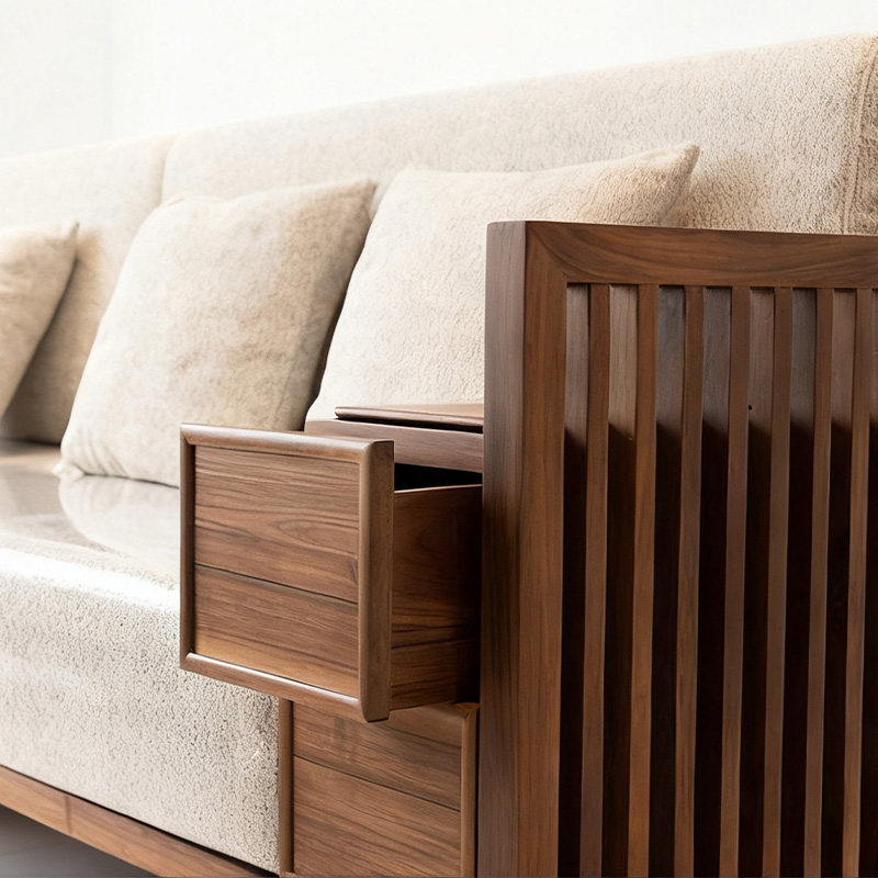梵霖司新中式 实木沙发组合现代简约宋氏美学客厅胡桃木家具定制