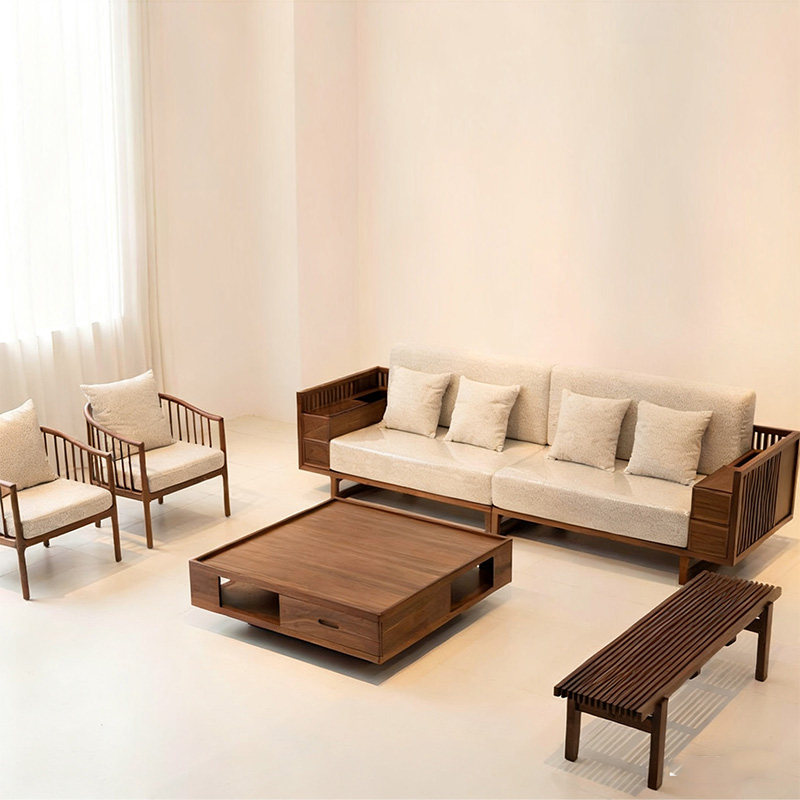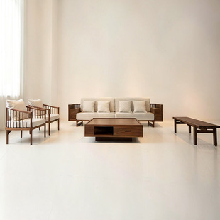 宋式 禅意民宿别墅轻奢客厅家具 美学北美黑胡桃实木沙发组合新中式