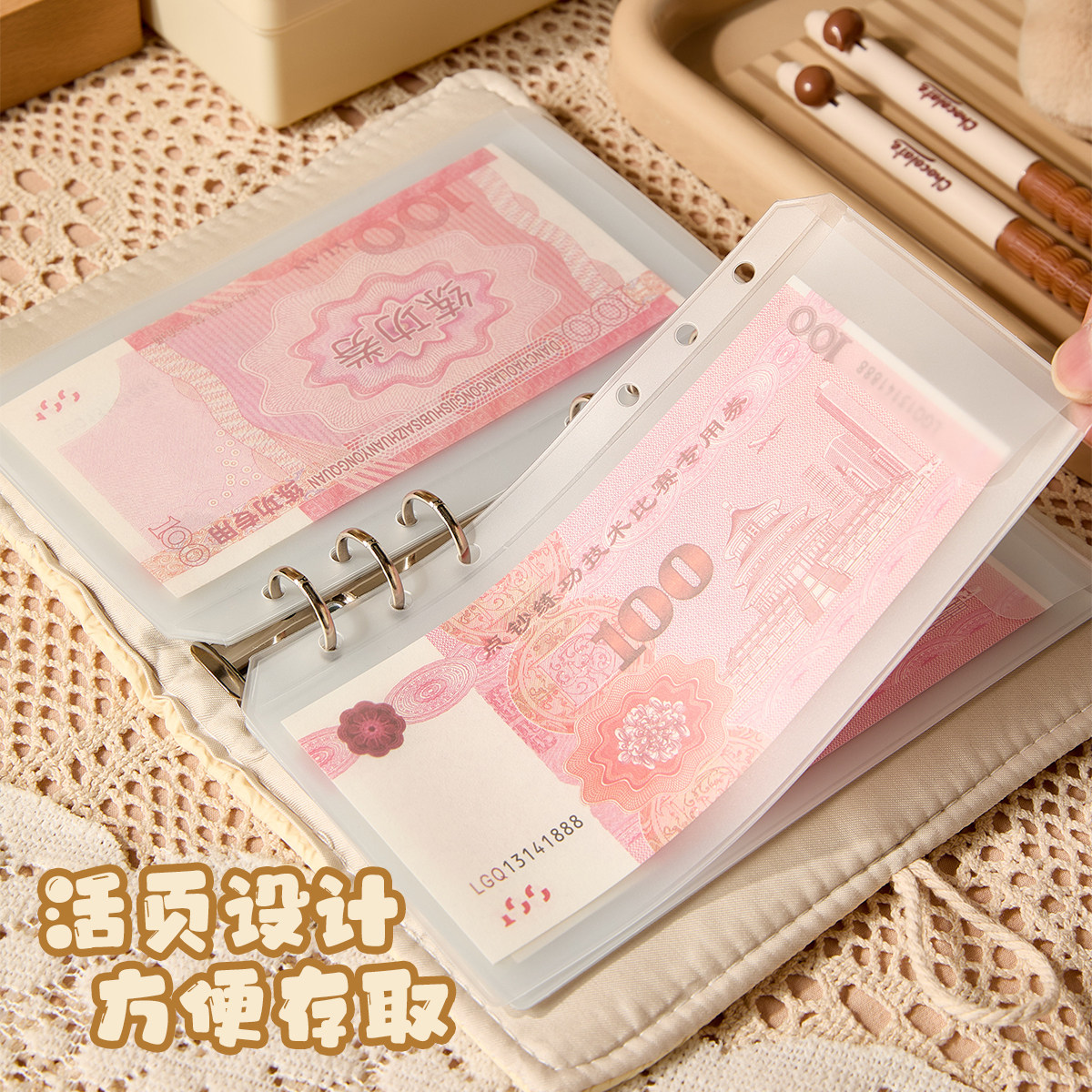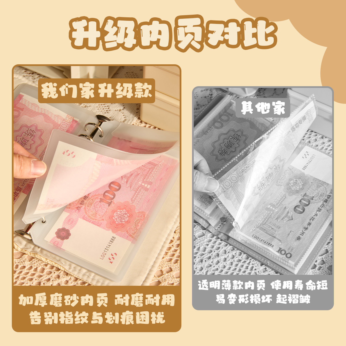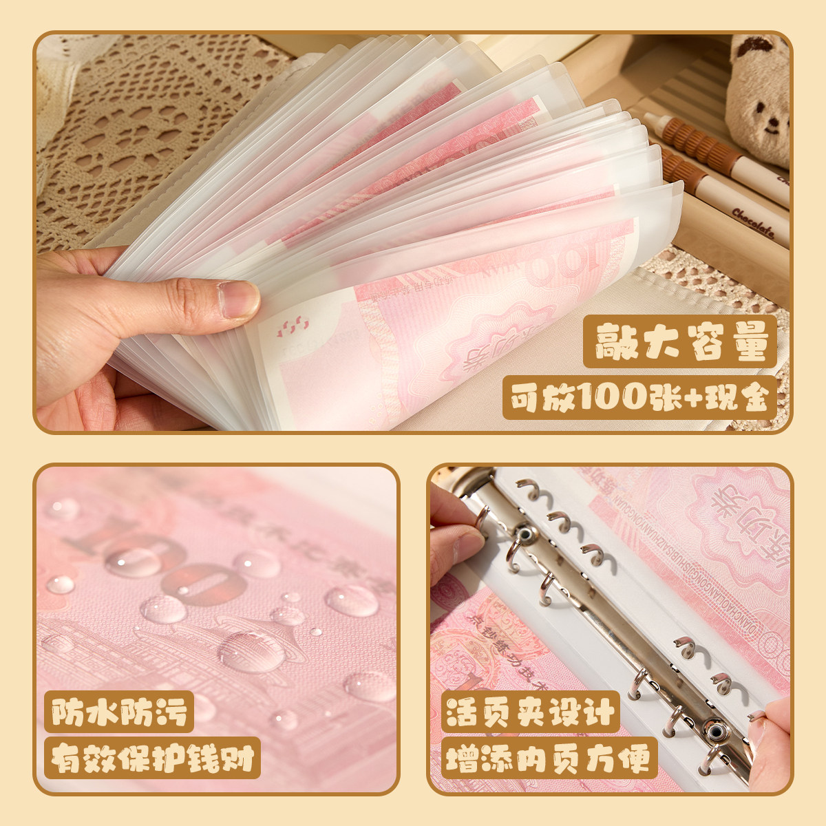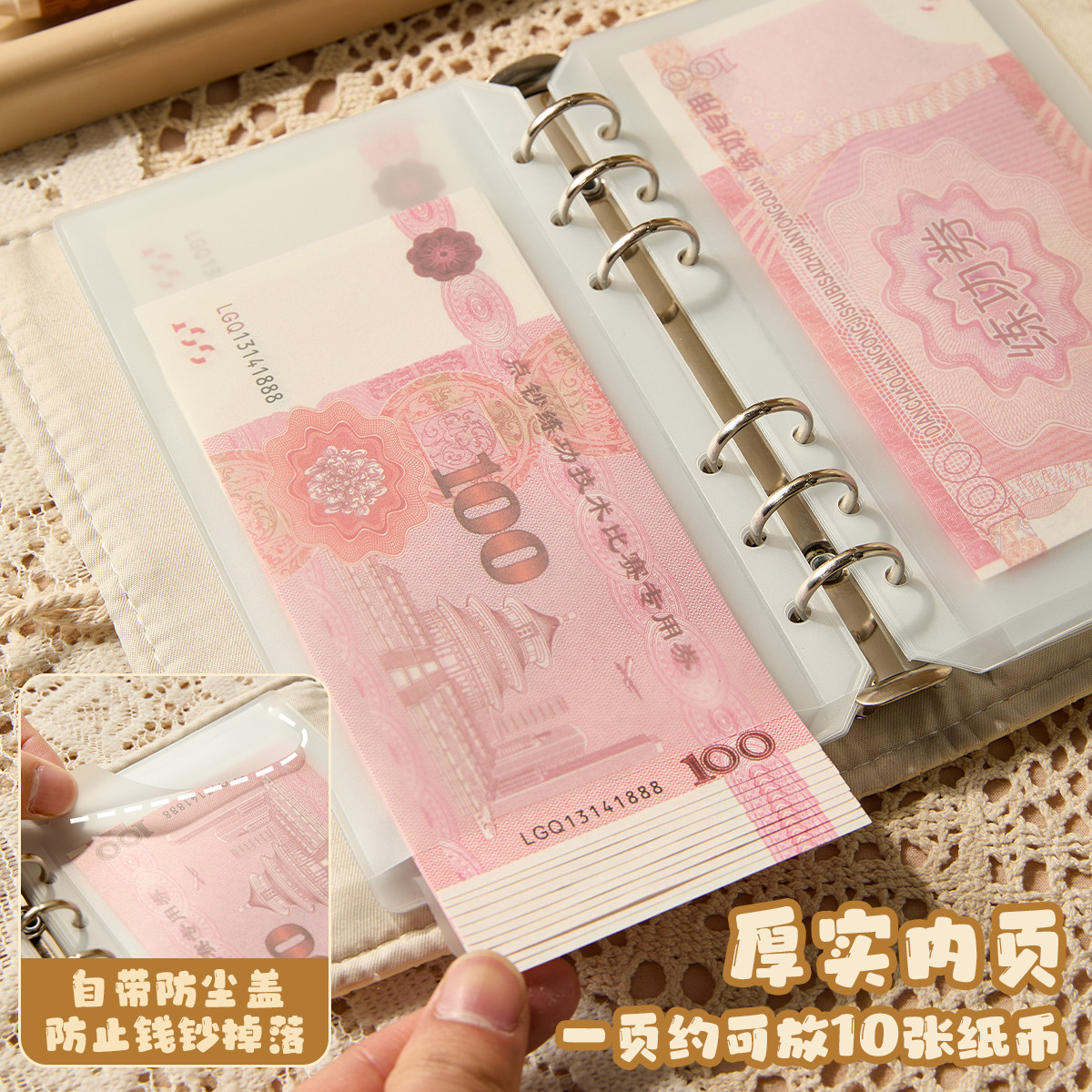 10万压岁钱网红大容量理财神器 现金存钱本人民币收藏册收纳包钱包可放一万元 三年二班 存钱夹钱册2026年新款