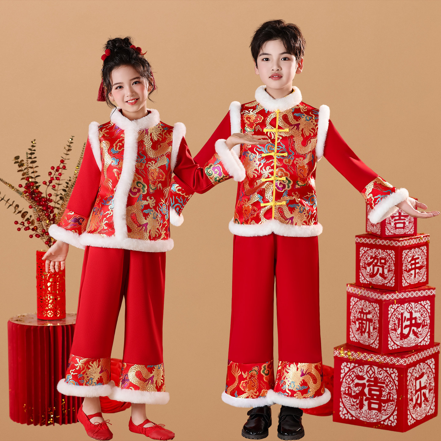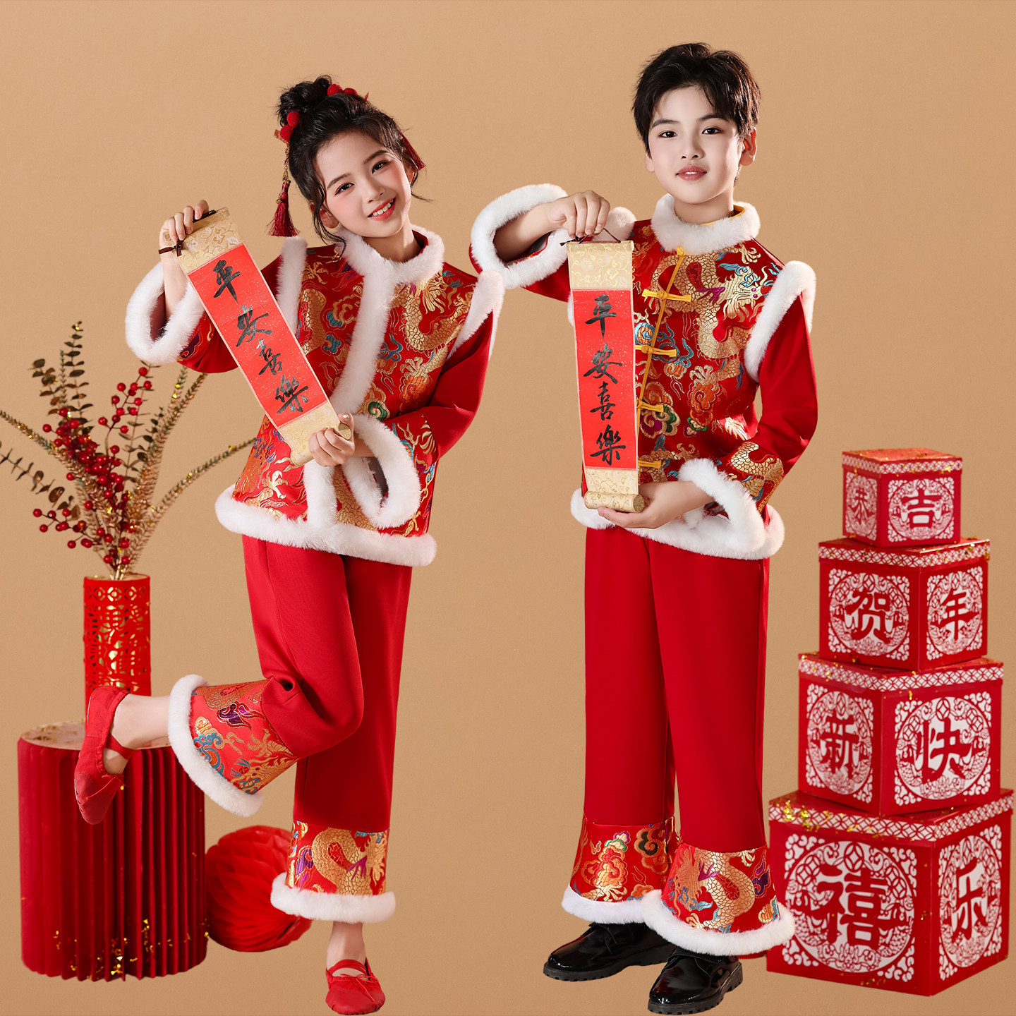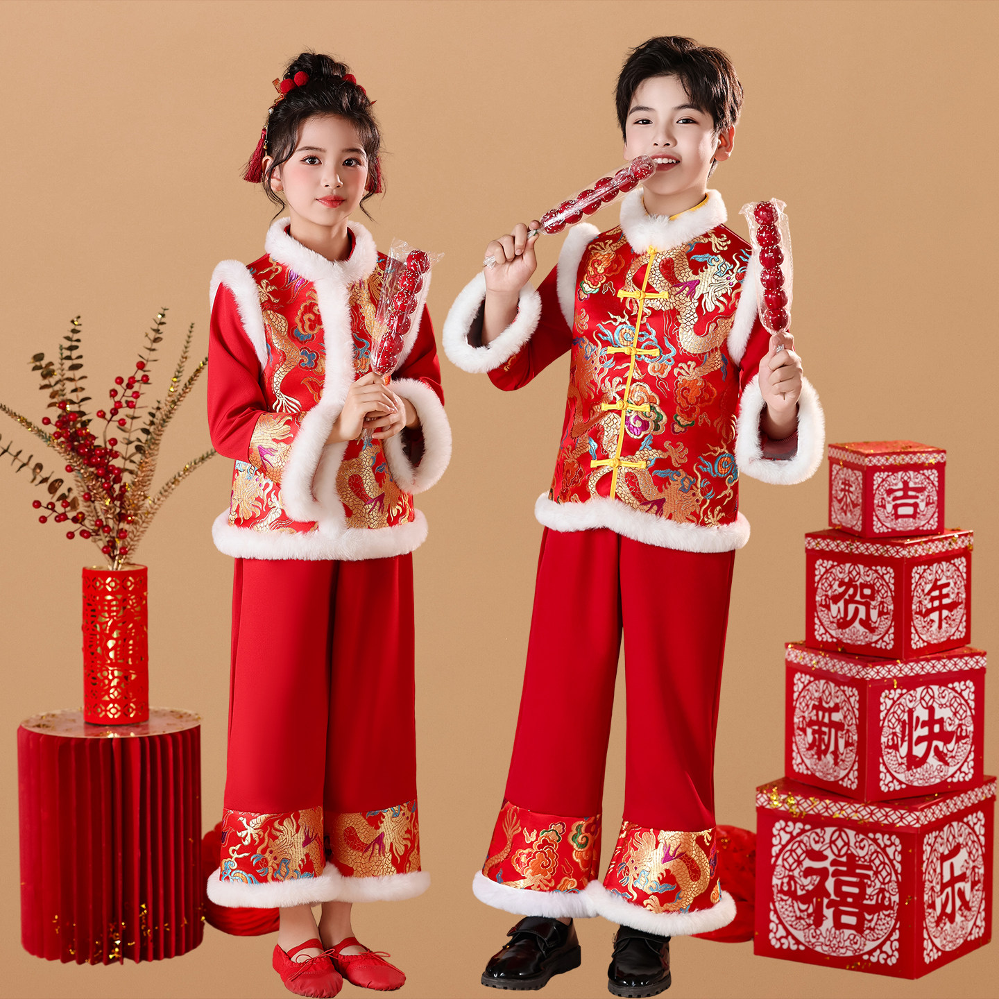 男女童新中式 年衣童装 新款 外套冬季 汉服新年拜年服演出服 儿童唐装