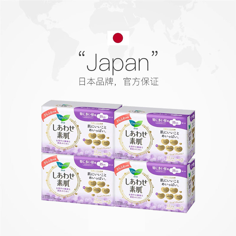 4棉柔 4包日本进口花王乐而雅F透气日用卫生巾25cm17片 自营