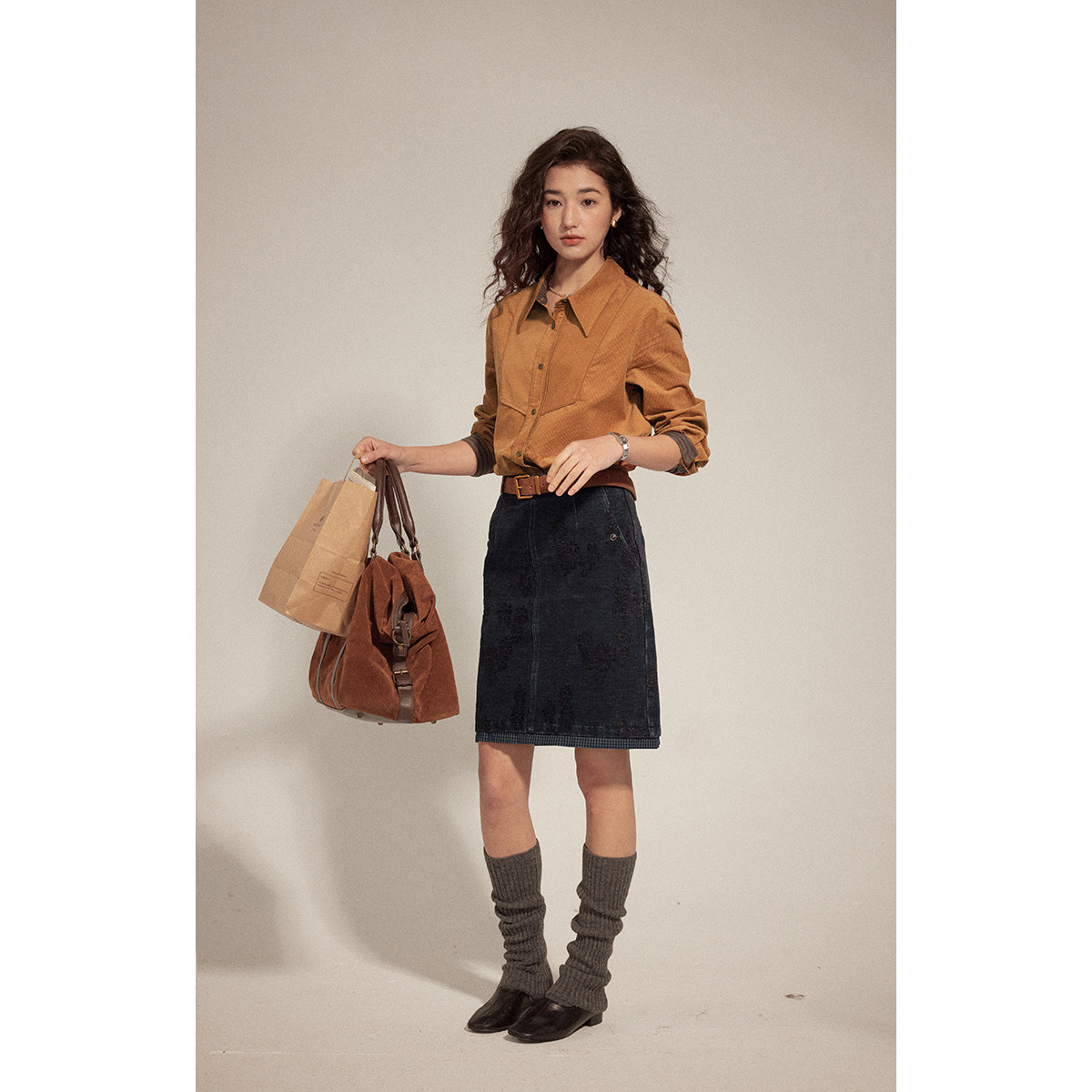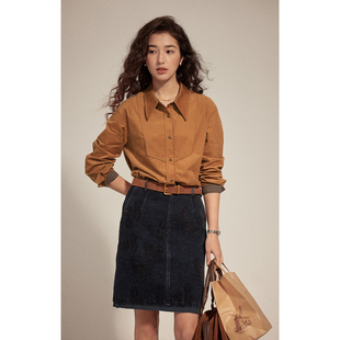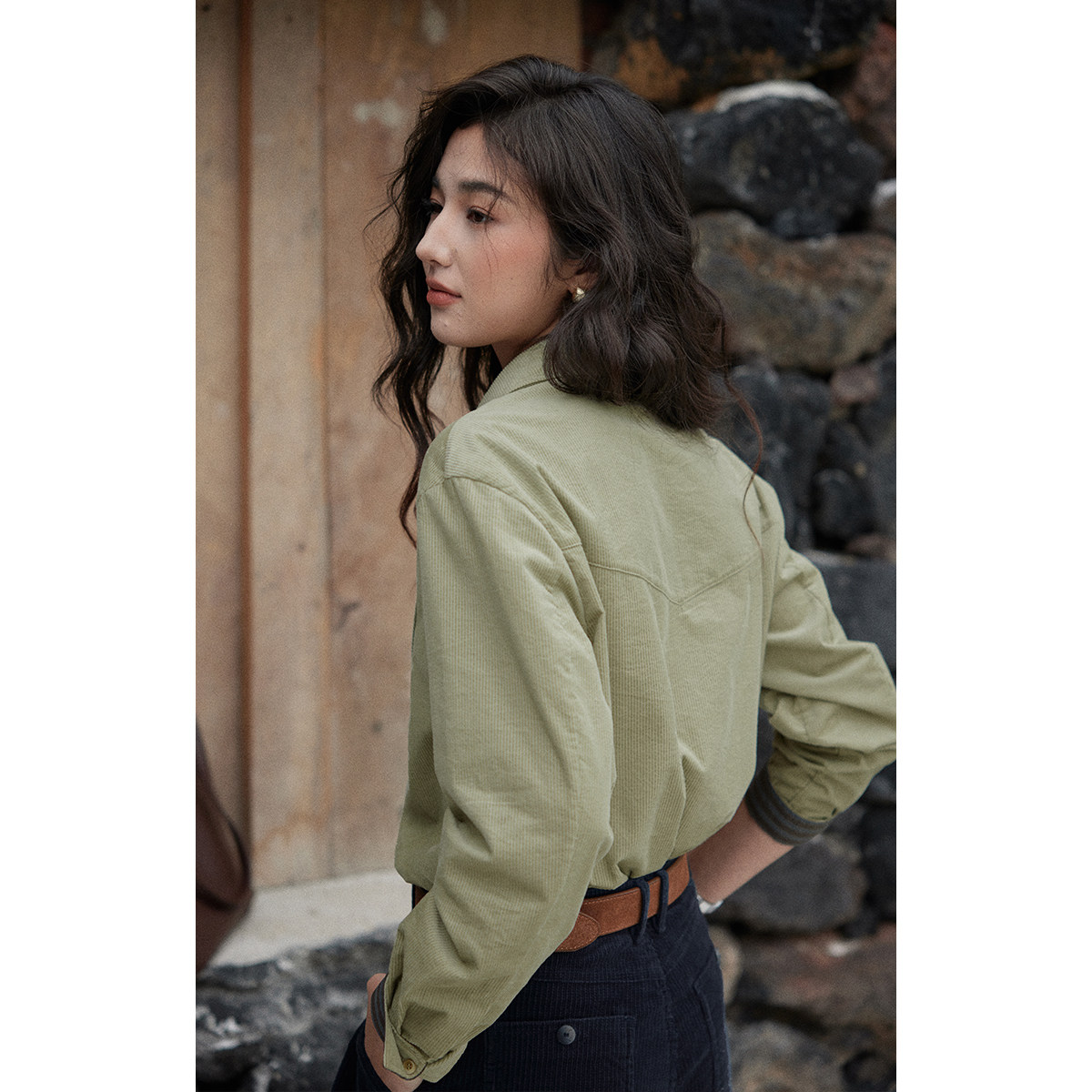 零点新品 9折 衬衫 女 莫代尔灯芯绒翻领长袖 法式 solighter