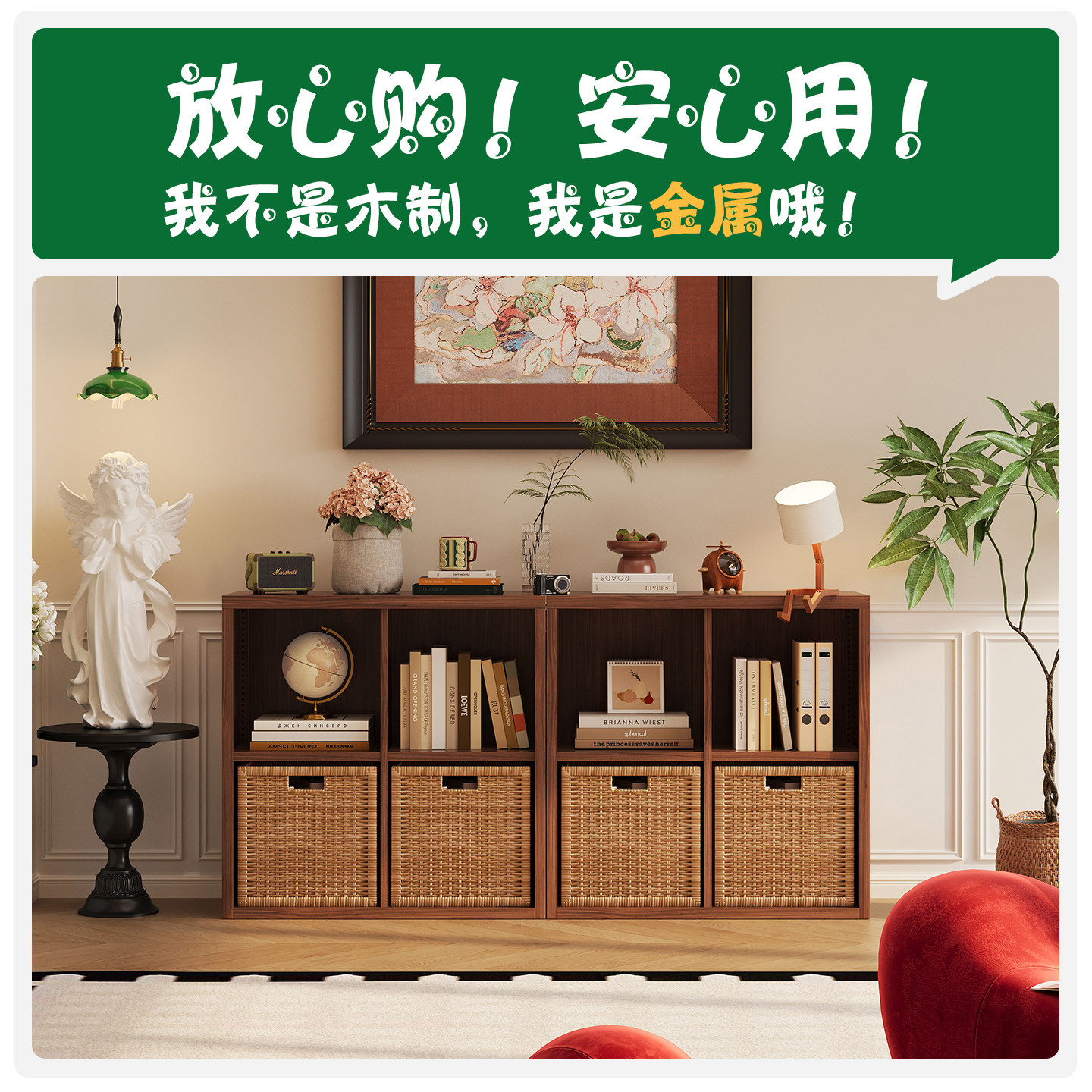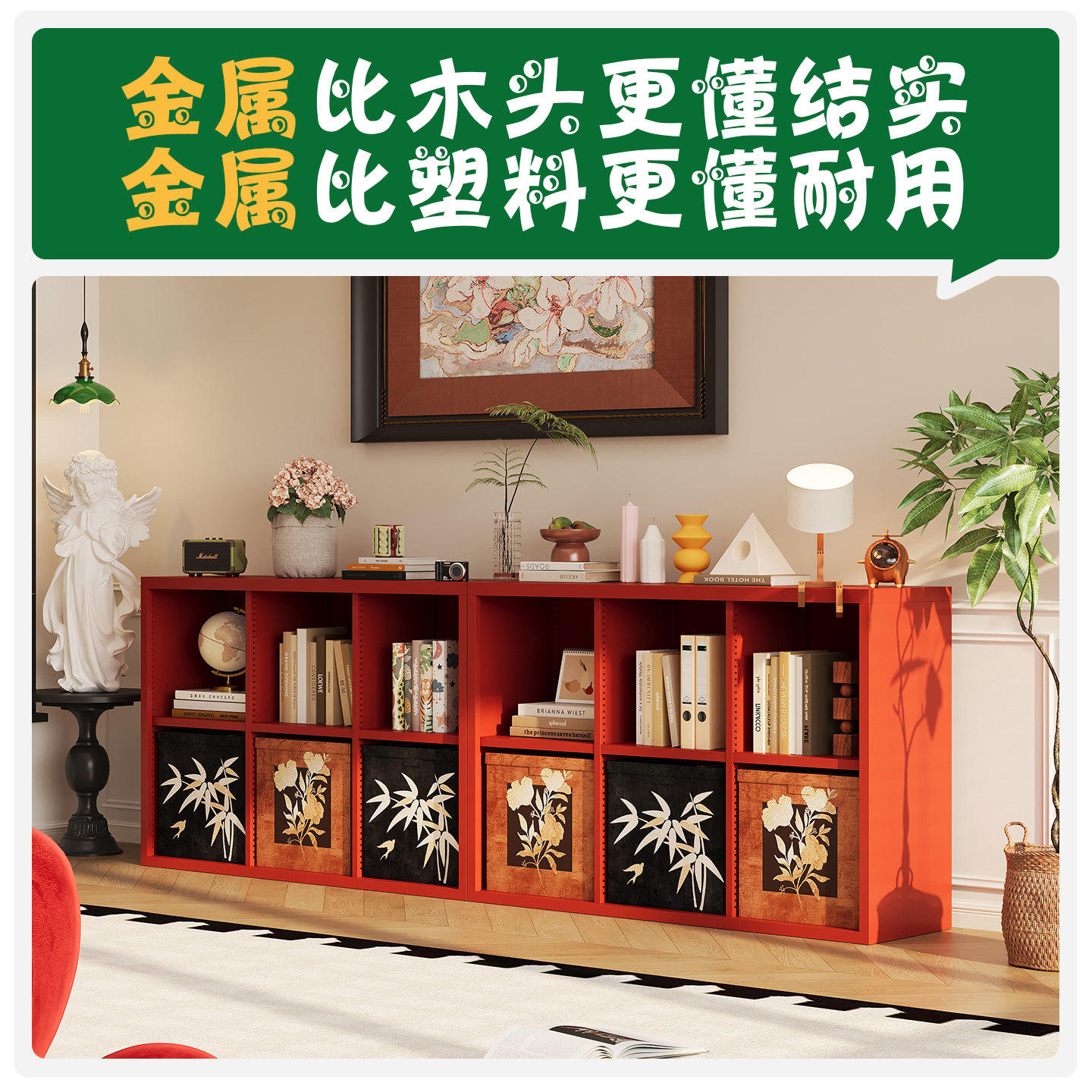 复古风金属自由组合格子柜客厅置物架儿童房玩具收纳柜子铁艺书架
