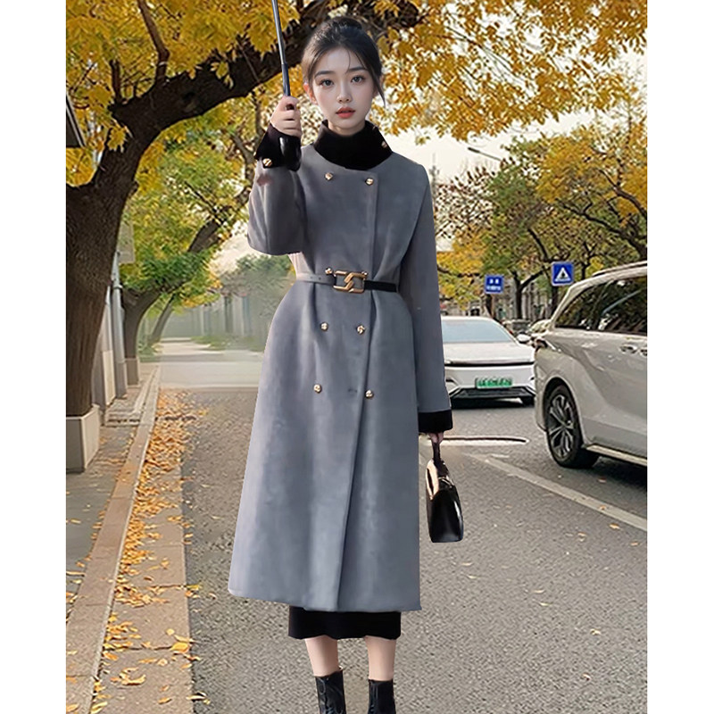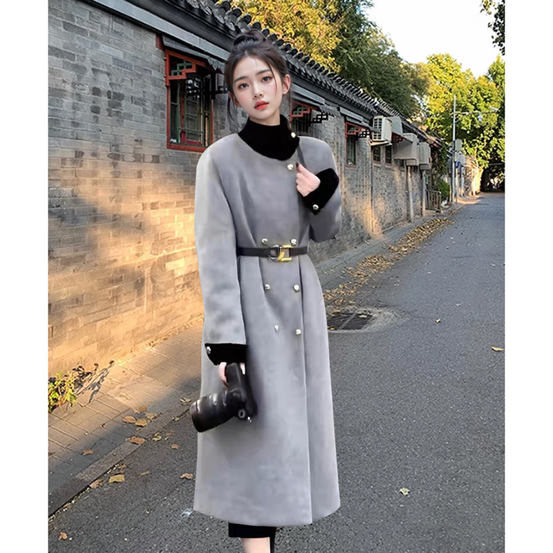 春秋新款 宽松中长款 立领双排扣呢子大衣女 气质时尚 巴黎画报