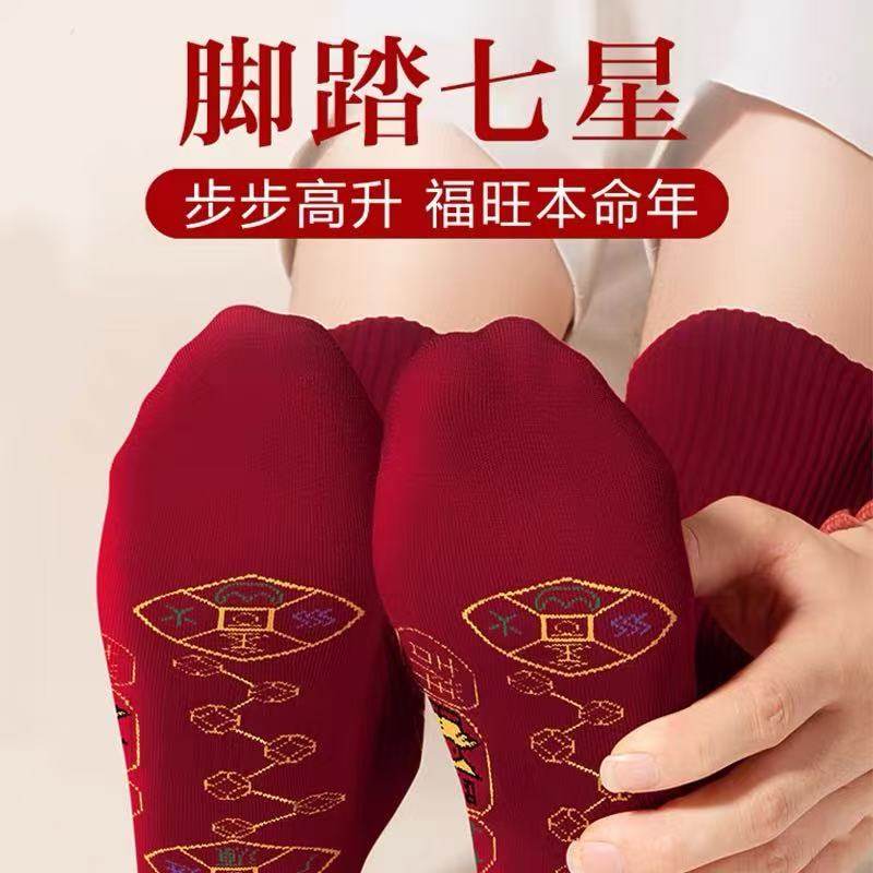 马年本命年红色袜子脚踏七星踩脚底小人新年鸿运情侣男女2026棉袜