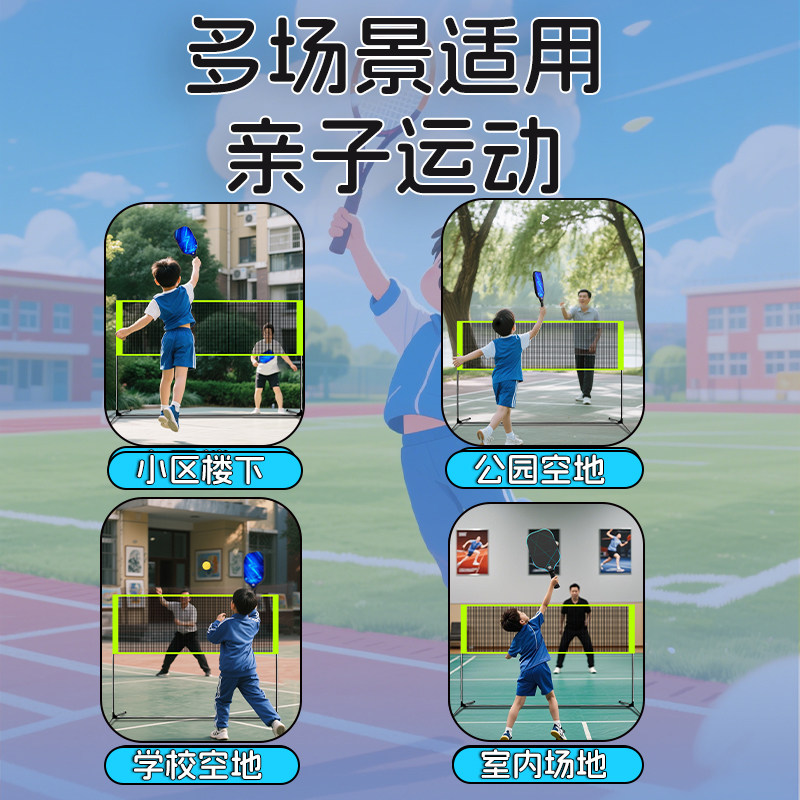 儿童羽毛球网架便携式 户外家用室内比赛简易可折叠架标准羽毛球网