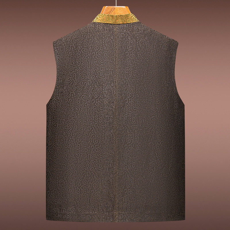 男装 中式 爸爸爷爷中老年人中国风马夹 香云纱马甲春季 高端中年男士
