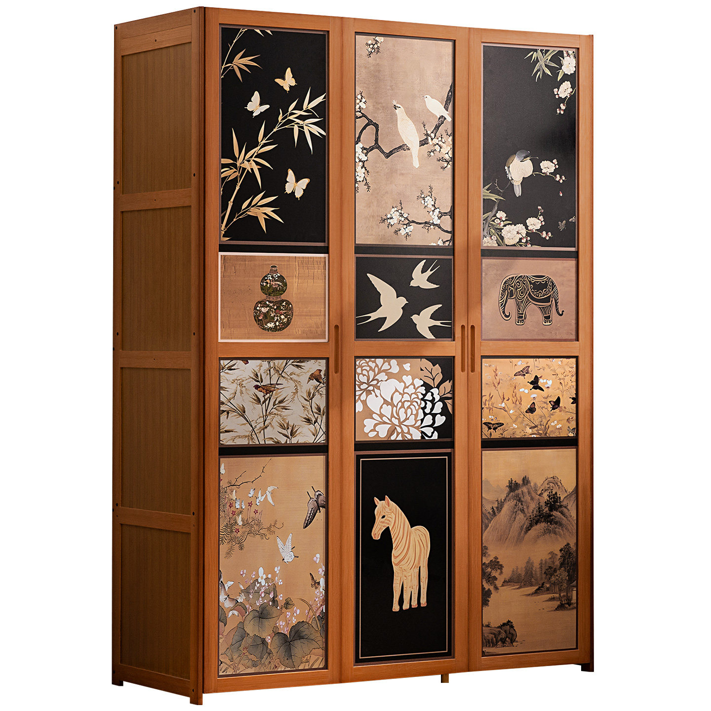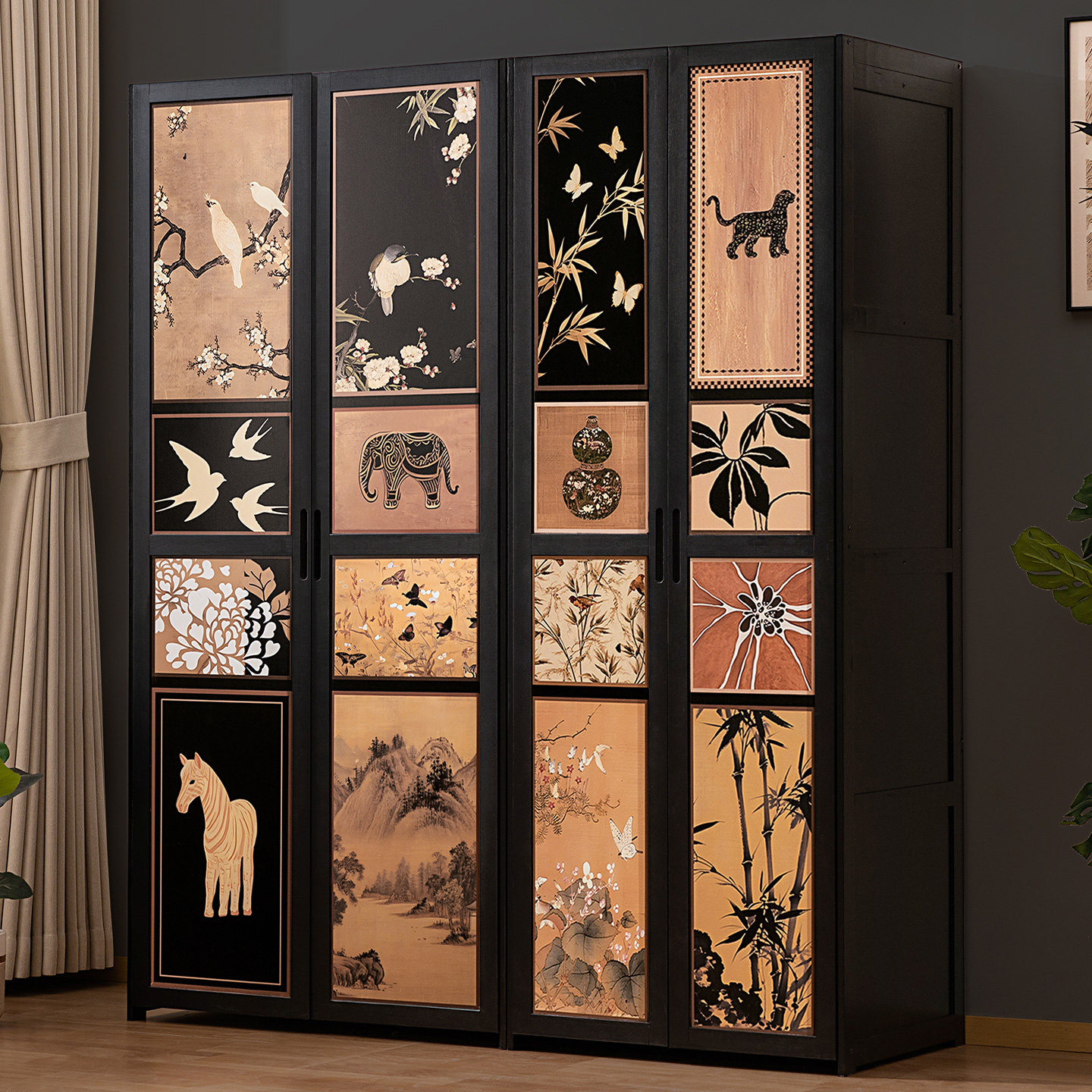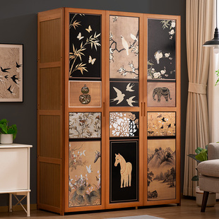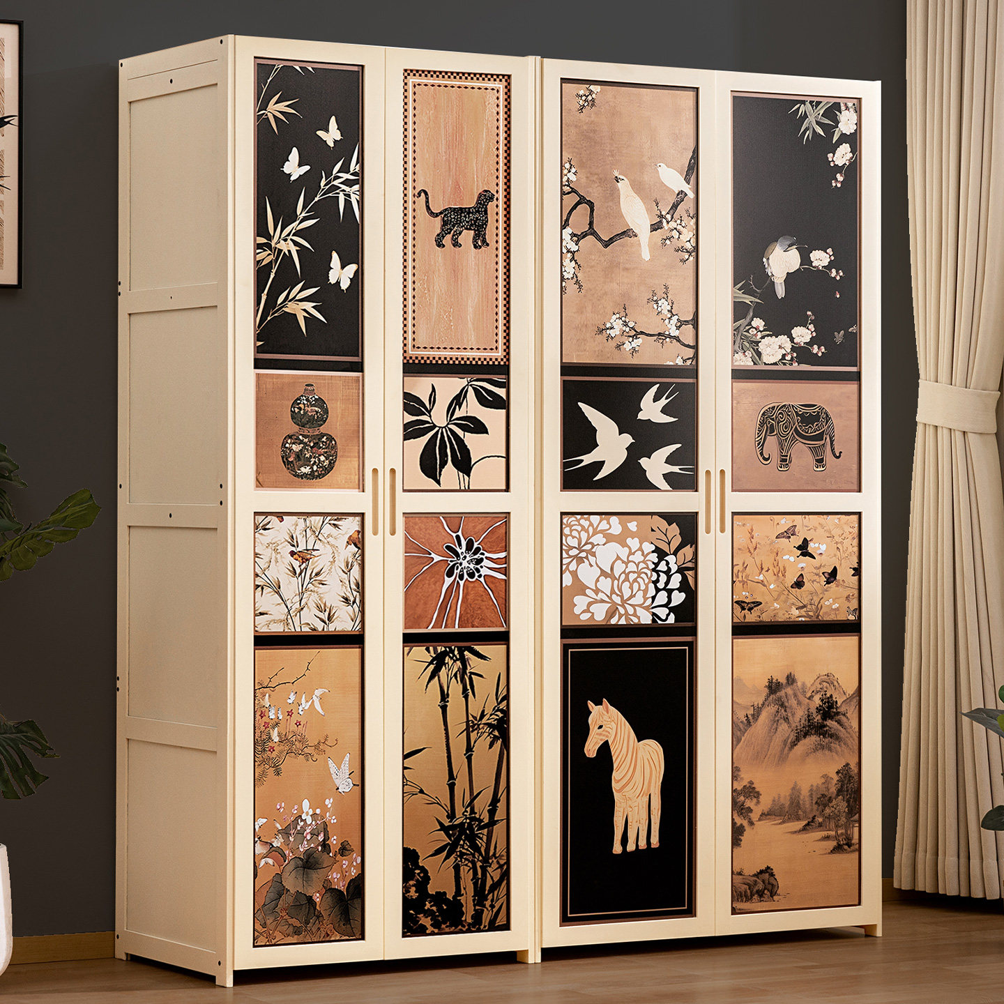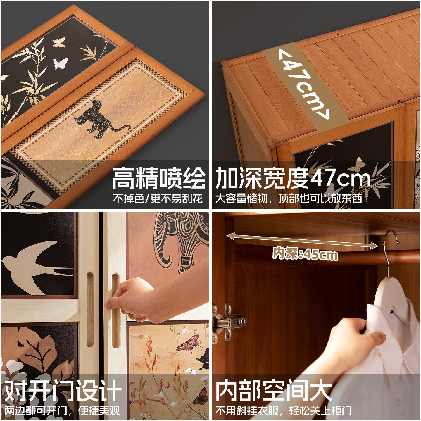 独立衣柜储物柜子家用卧室小户型出租房衣柜对开门中古风新款 衣橱