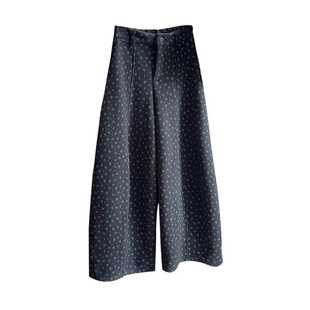 复古文艺碎花加绒加厚毛呢阔腿裤 女 女秋冬高腰显瘦减龄百搭弯刀裤