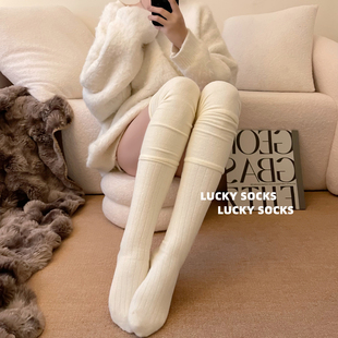 袜子女长筒袜秋冬季 小腿袜加绒加厚纯棉大腿过膝袜冬天保暖中筒袜