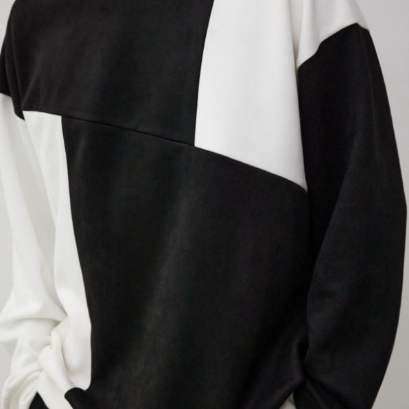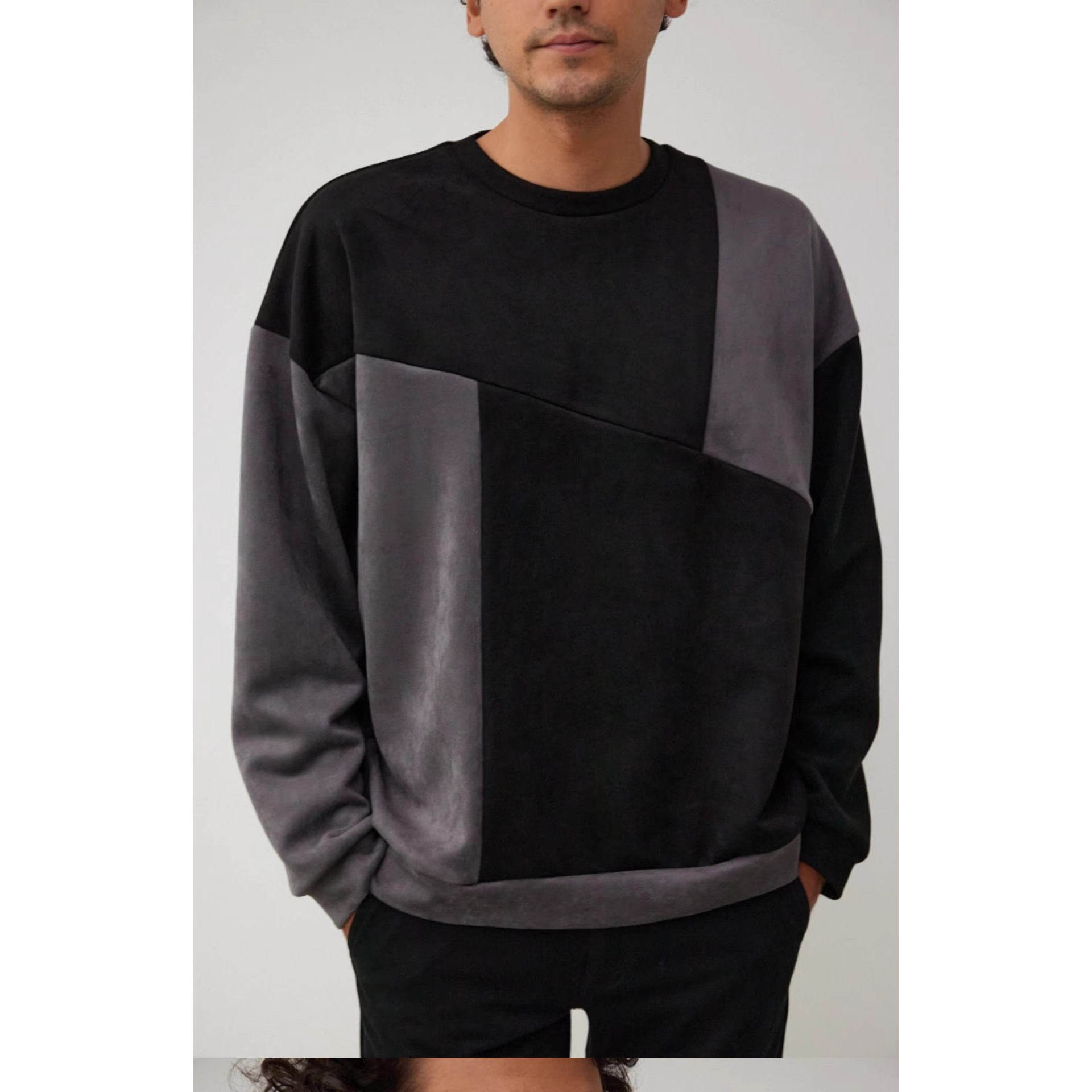 D08019日单春秋客供料圆领套头宽松男休闲款 卫衣 麂皮绒撞色长袖