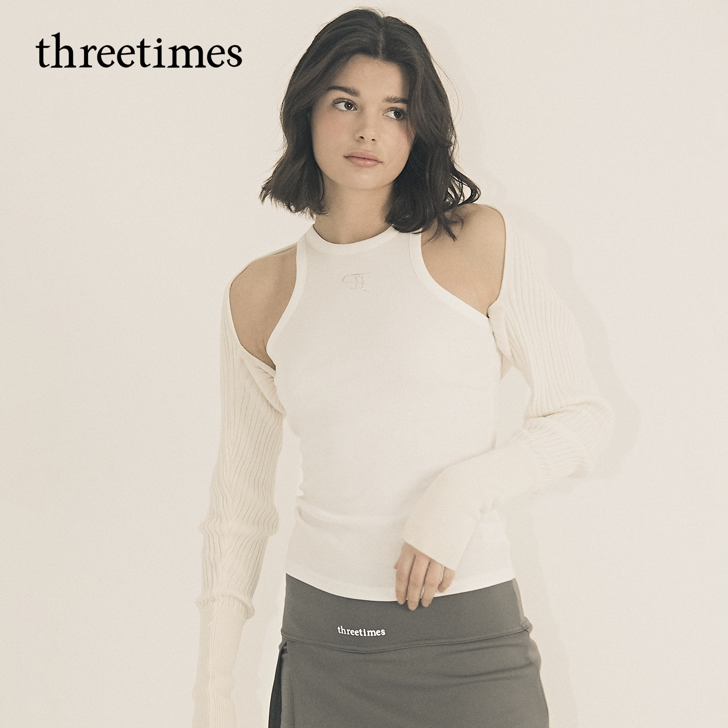 女外搭罩衫 披肩针织开衫 上衣 长袖 threetimes2026超火ins博主同款