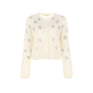 春秋新品 复古开衫 百搭简约韩系上衣女 try羊毛马海毛绣花法式 wana