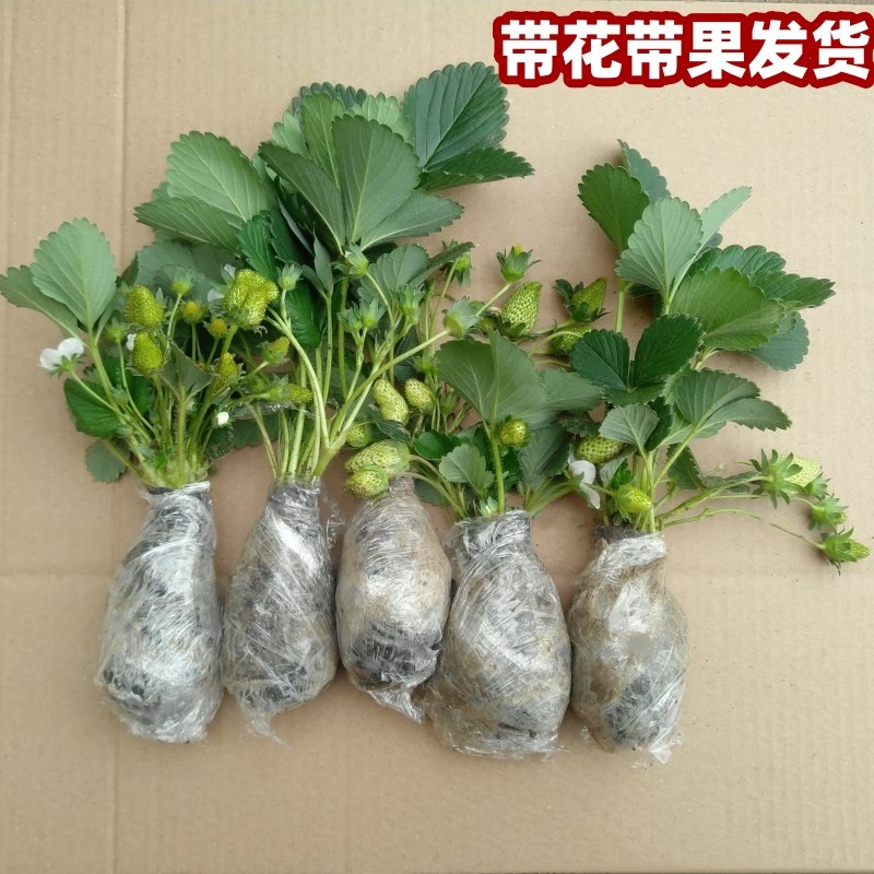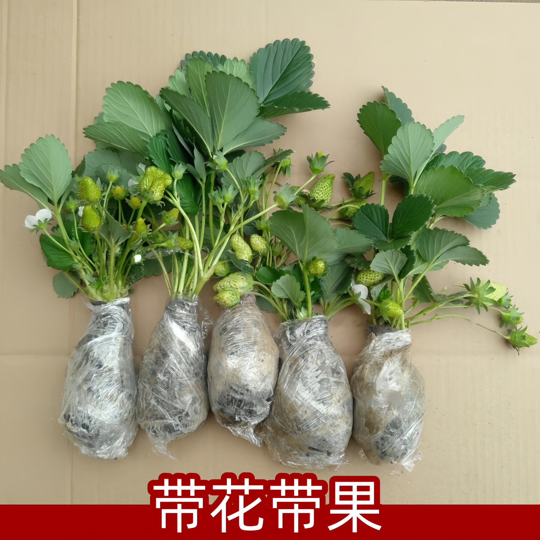 奶油草莓苗原盆原土四季 结果红颜盆栽带果阳台南北方种植果苗秧苗