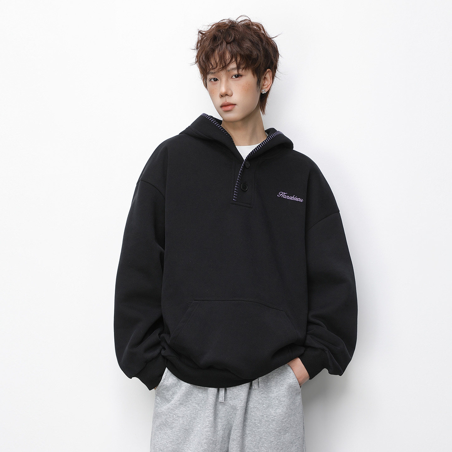 高克重拉链开领宽松休闲外套 简约运动风连帽卫衣2026新款 OFF