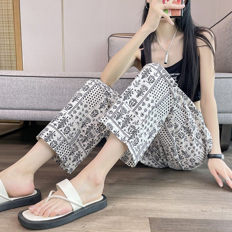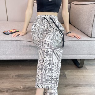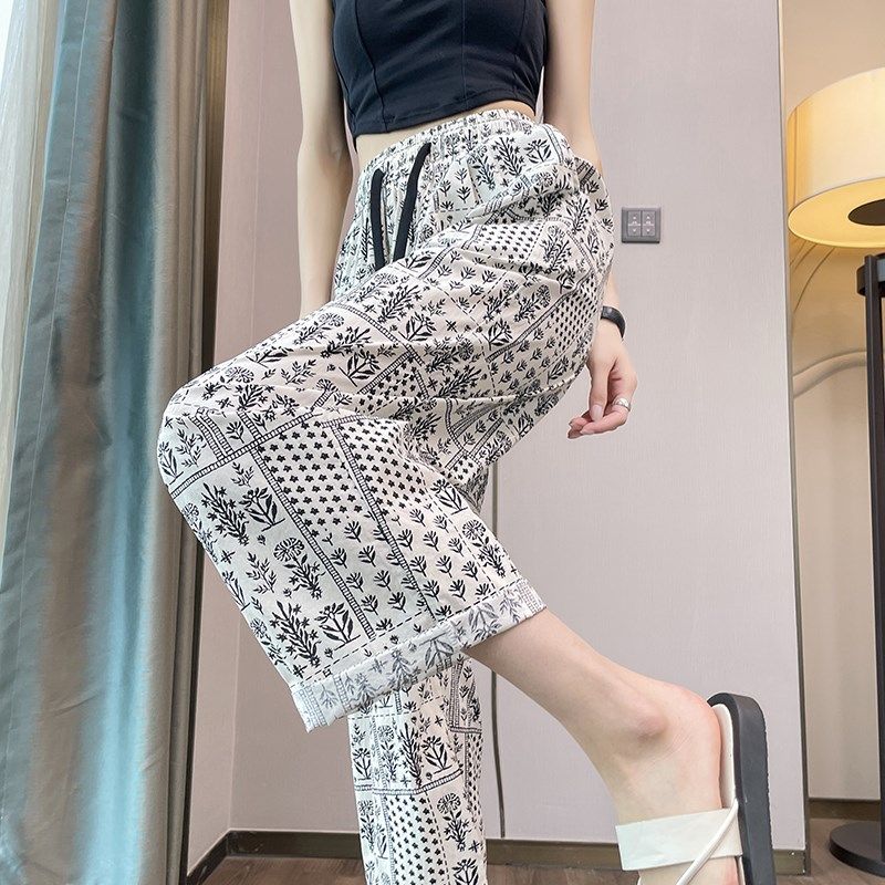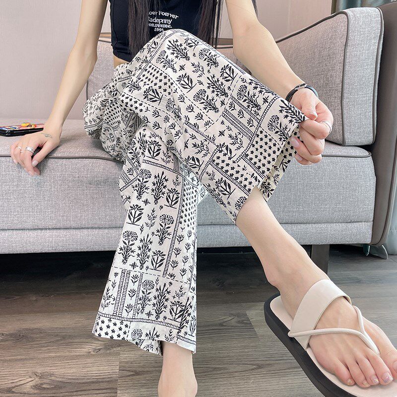 2025新款 子女夏季 薄款 高腰宽松休闲沙滩裤 窄版 九分印花阔腿裤 花裤