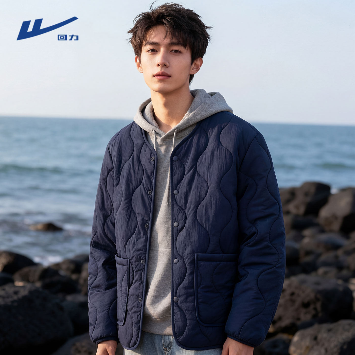 回力无领棉服男冬季 加绒轻薄蓄热保暖夹棉贴身内胆棉袄防寒棉衣Y
