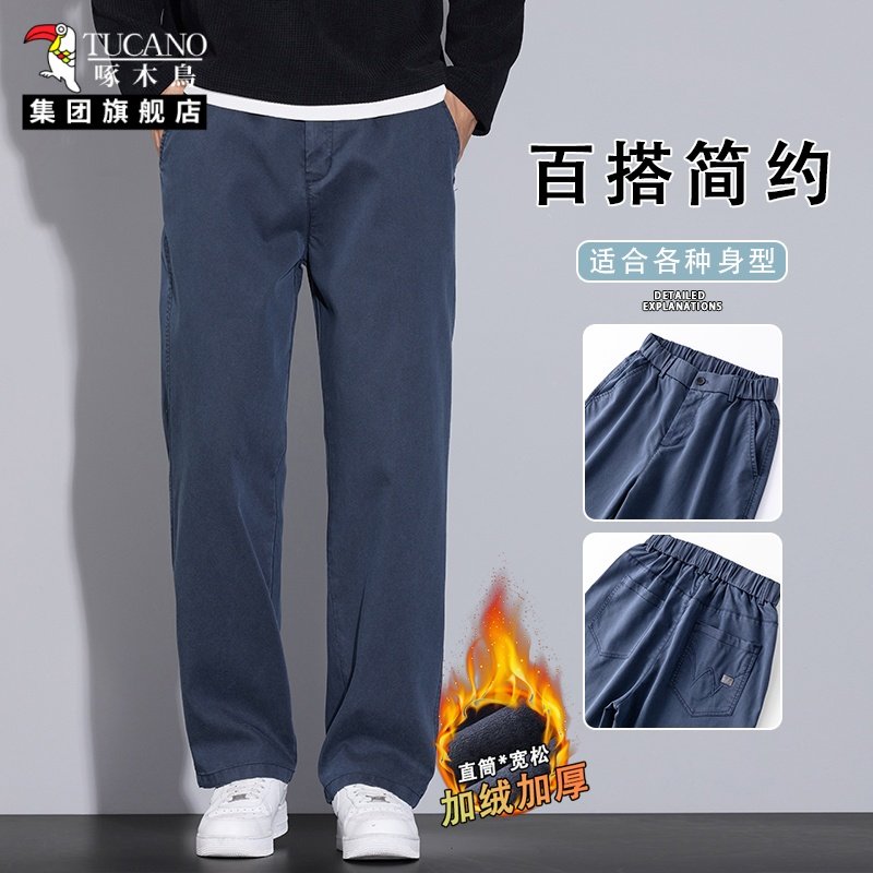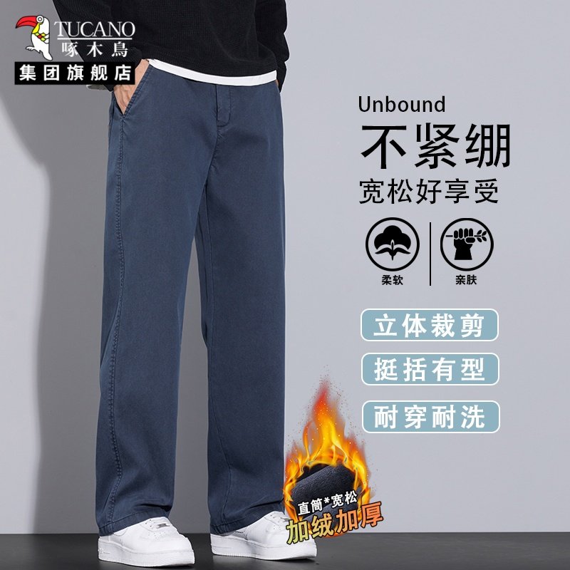 直筒裤 啄木鸟集团官方莱赛尔加绒休闲裤 修身 新款 子XT 男2026年春季