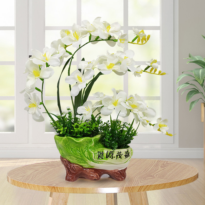 蝴蝶兰仿真花套装 饰摆设 摆件假花绢花塑料花家居客厅茶几电视柜装
