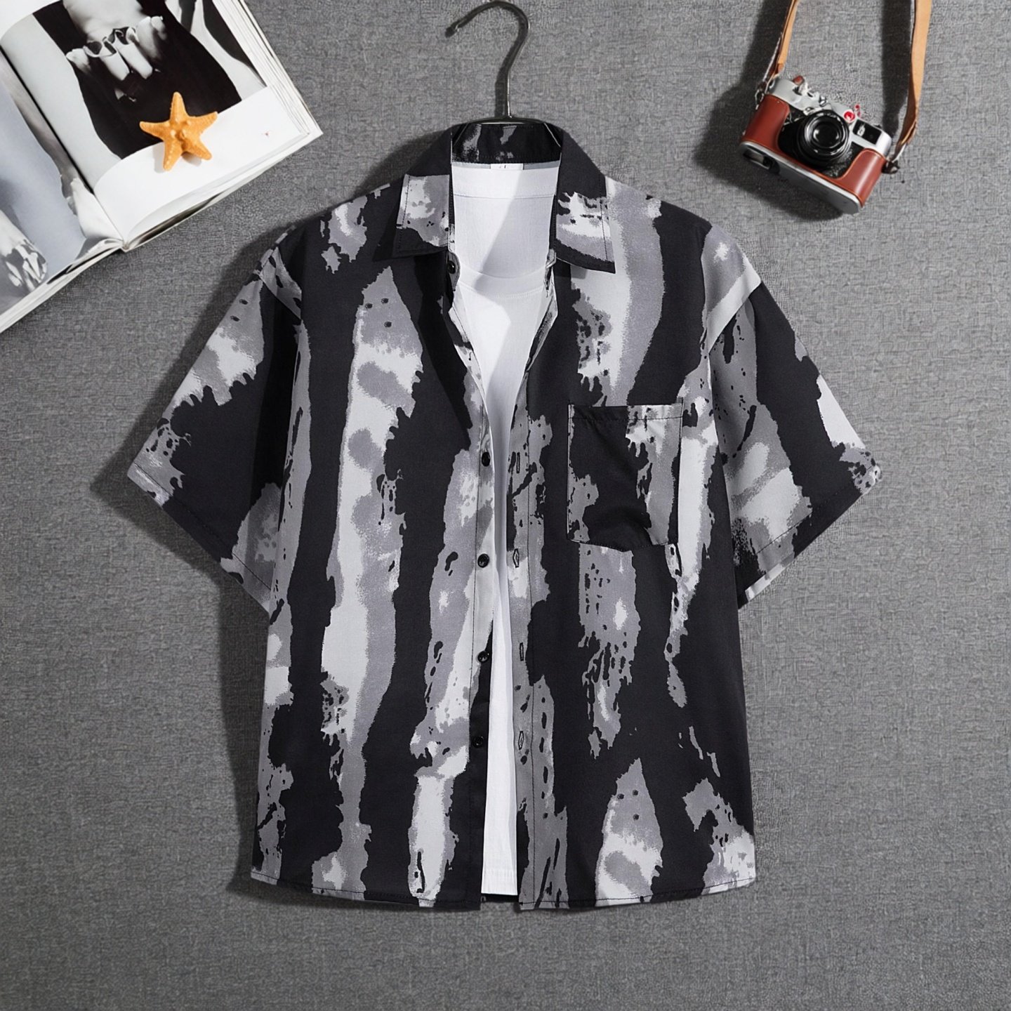 男女度假速干直筒短裤 夏季 套装 衬衫 两件套 沙滩海边水墨扎染半截袖