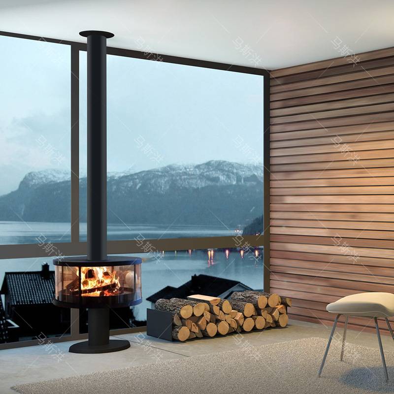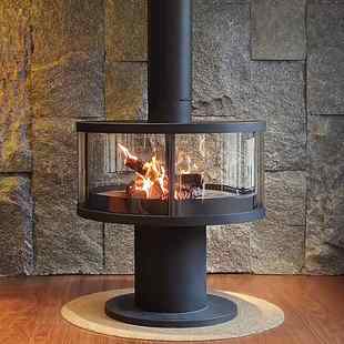饰 别墅客厅吊挂火炉装 定制悬挂式 壁炉真火燃木酒精取暖器现代法式