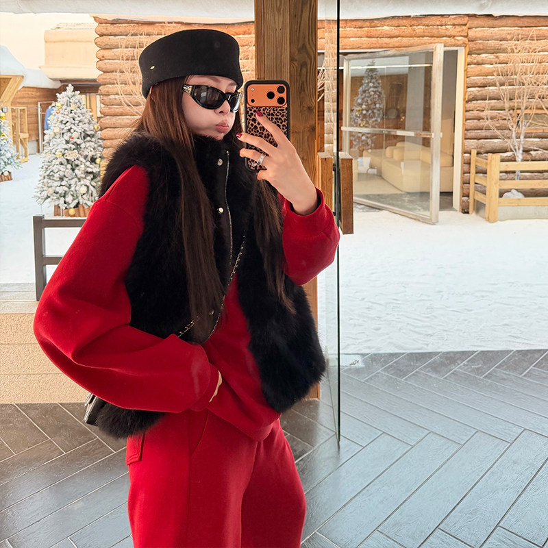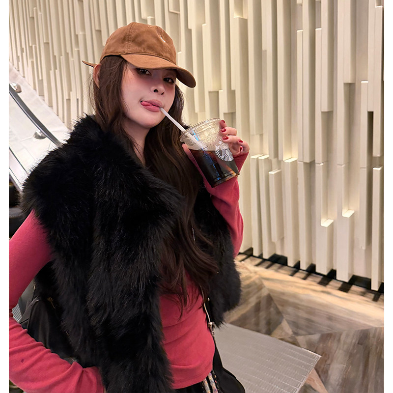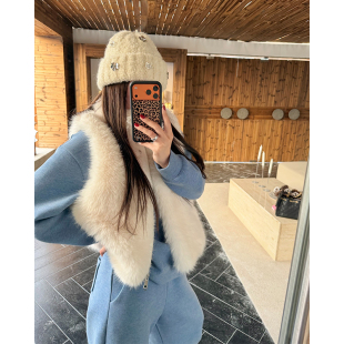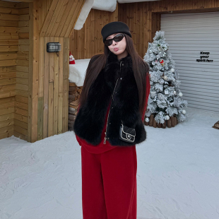 保暖夹棉毛毛无袖 新款 外套 高级白色环保皮草马甲女冬季 tingtings