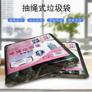垃圾袋免撕抽绳式 加厚厨房办公室特厚黑色大号塑料袋子 家用手提式
