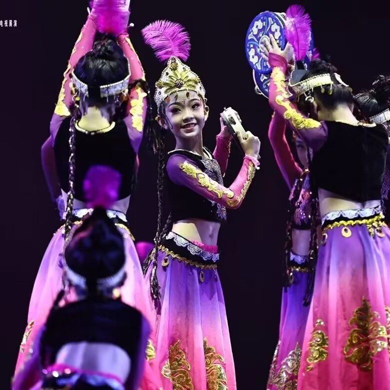 少数民族服装 儿童新疆维吾尔族大摆裙石榴红了舞蹈演出服艺考服装