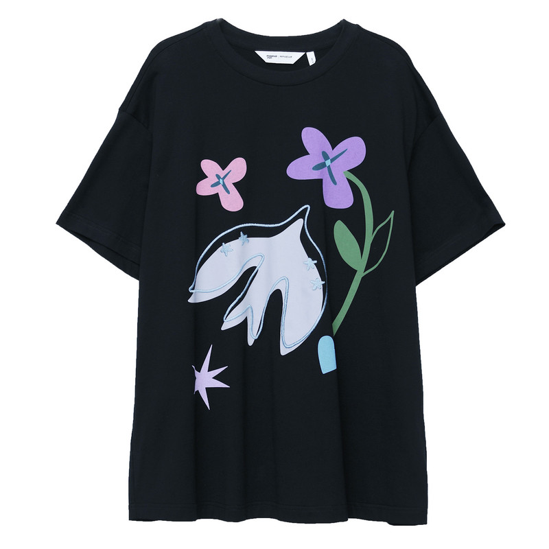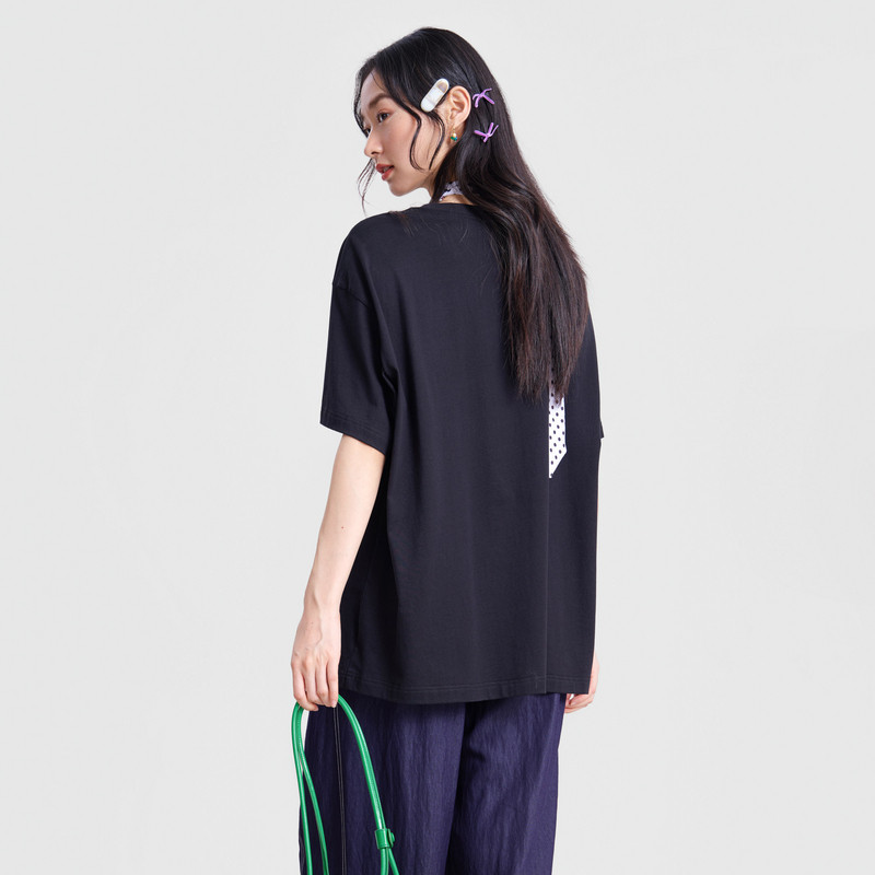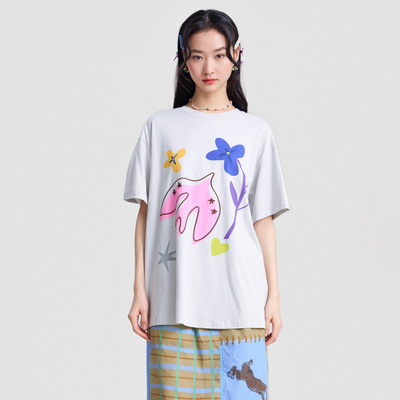 T恤女 .FUN系列纯棉圆领趣味印绣花中长款 MOVEUP幻走2026春季 新款