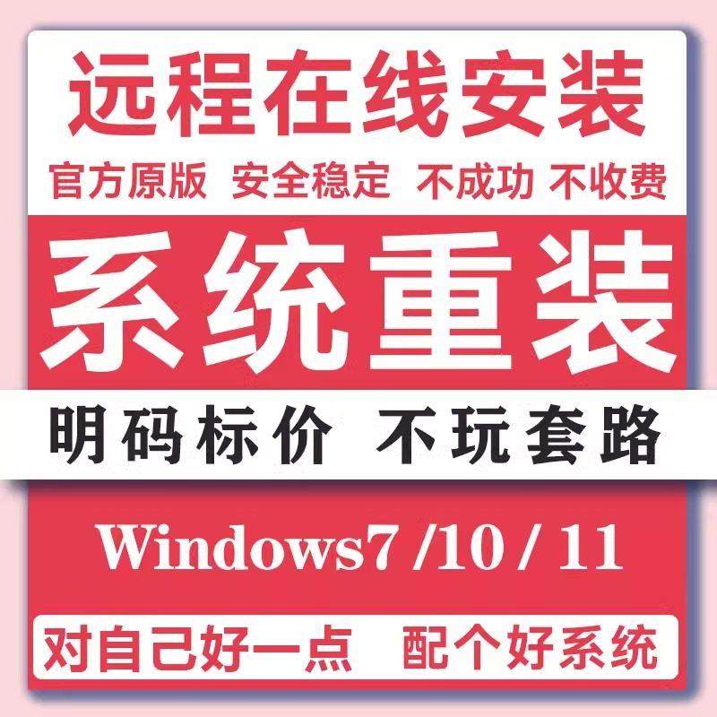 笔记本重装 纯净win7win10win11台式 系统重做 安装 远程电脑系统重装