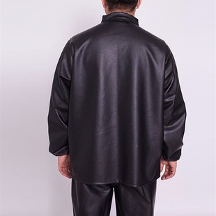 秋冬短款 痞帅高级感黑色皮衣外套男宽松立领垫肩加棉机车PU皮夹克