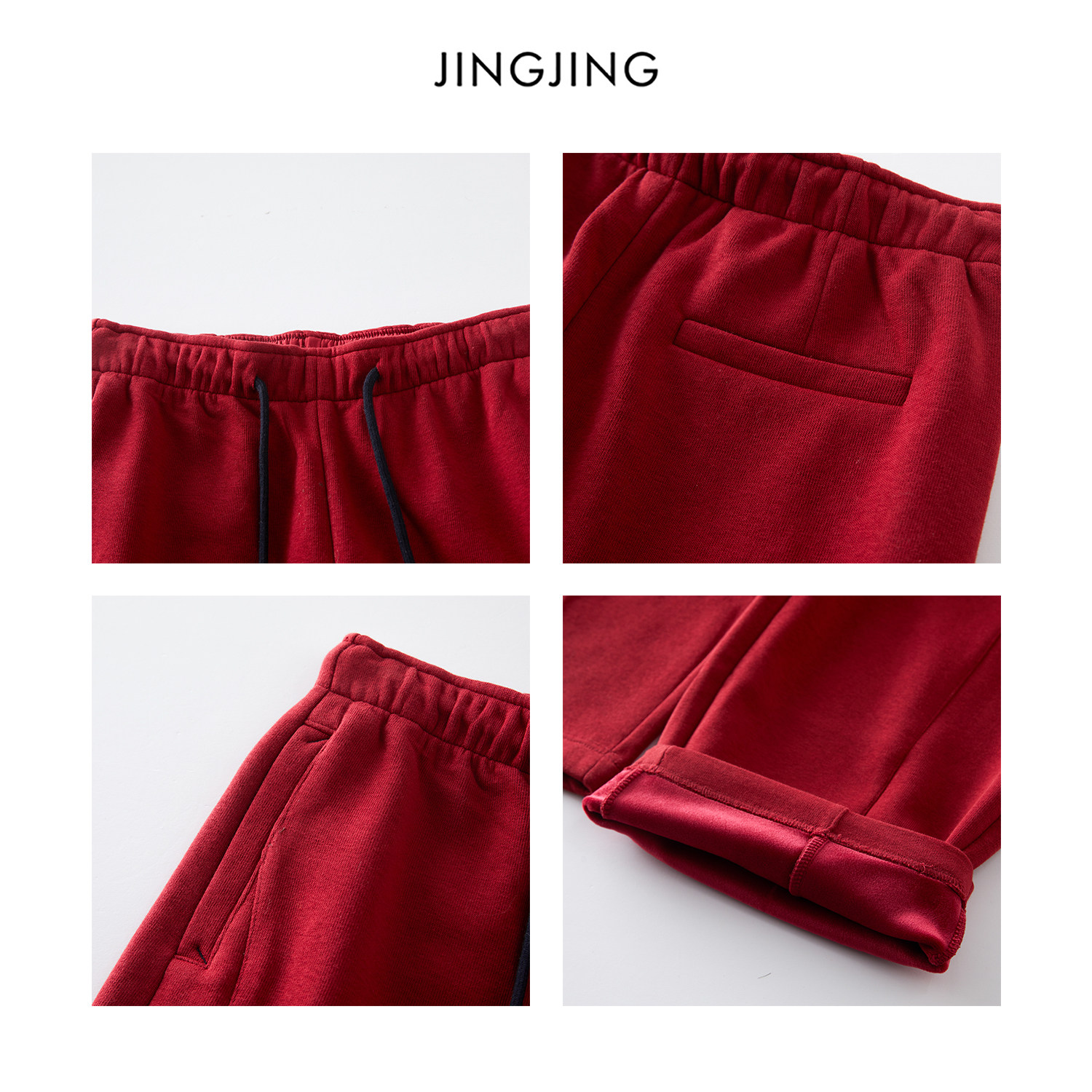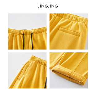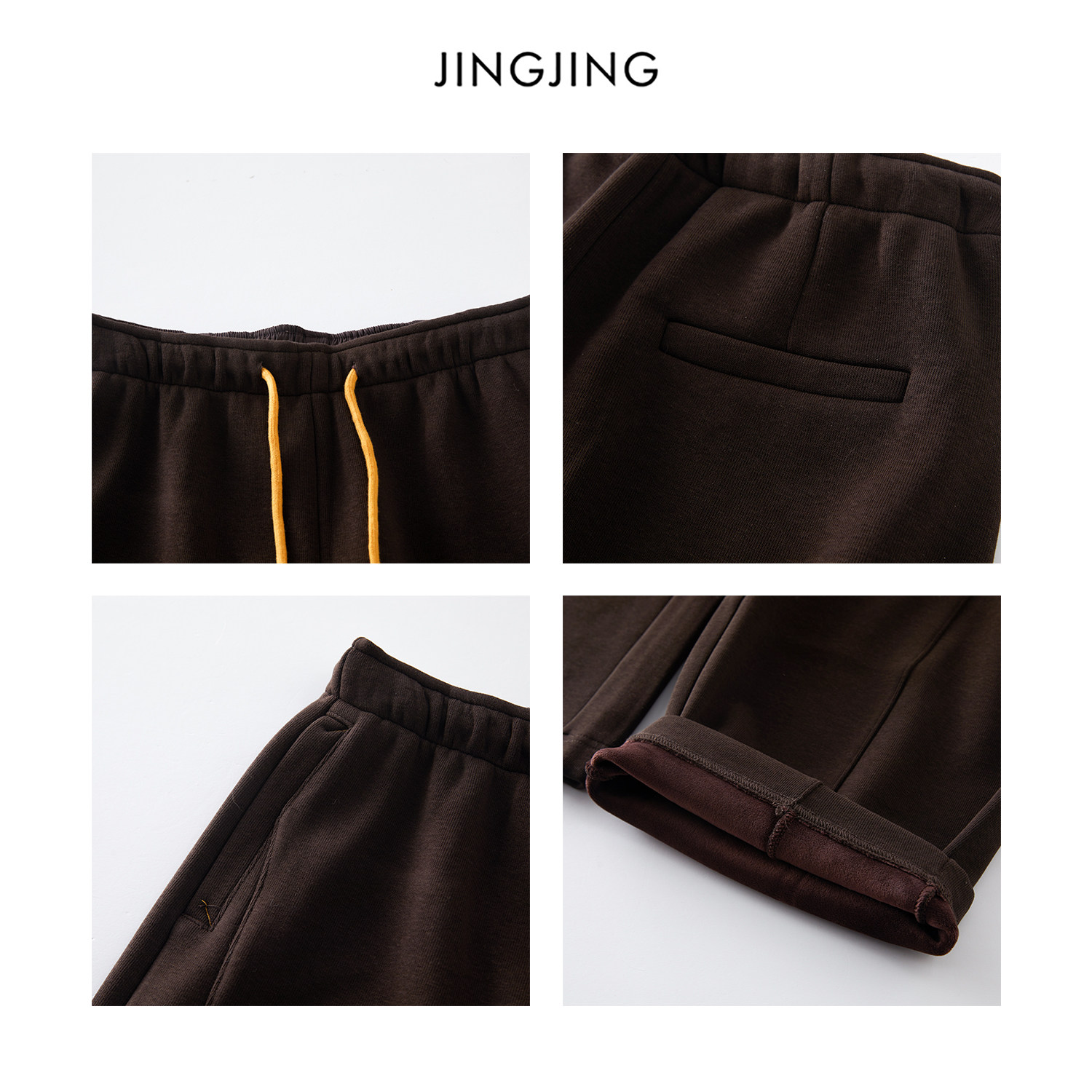 秋冬抽绳松紧腰弯刀休闲加绒卫裤 JINGJING2025新款 金山日落