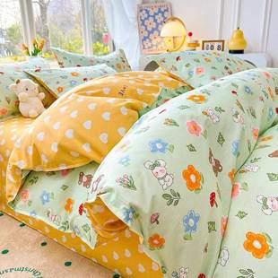 小清新全棉宿舍三件套床品4床上用品四件套纯棉床单被套床笠款