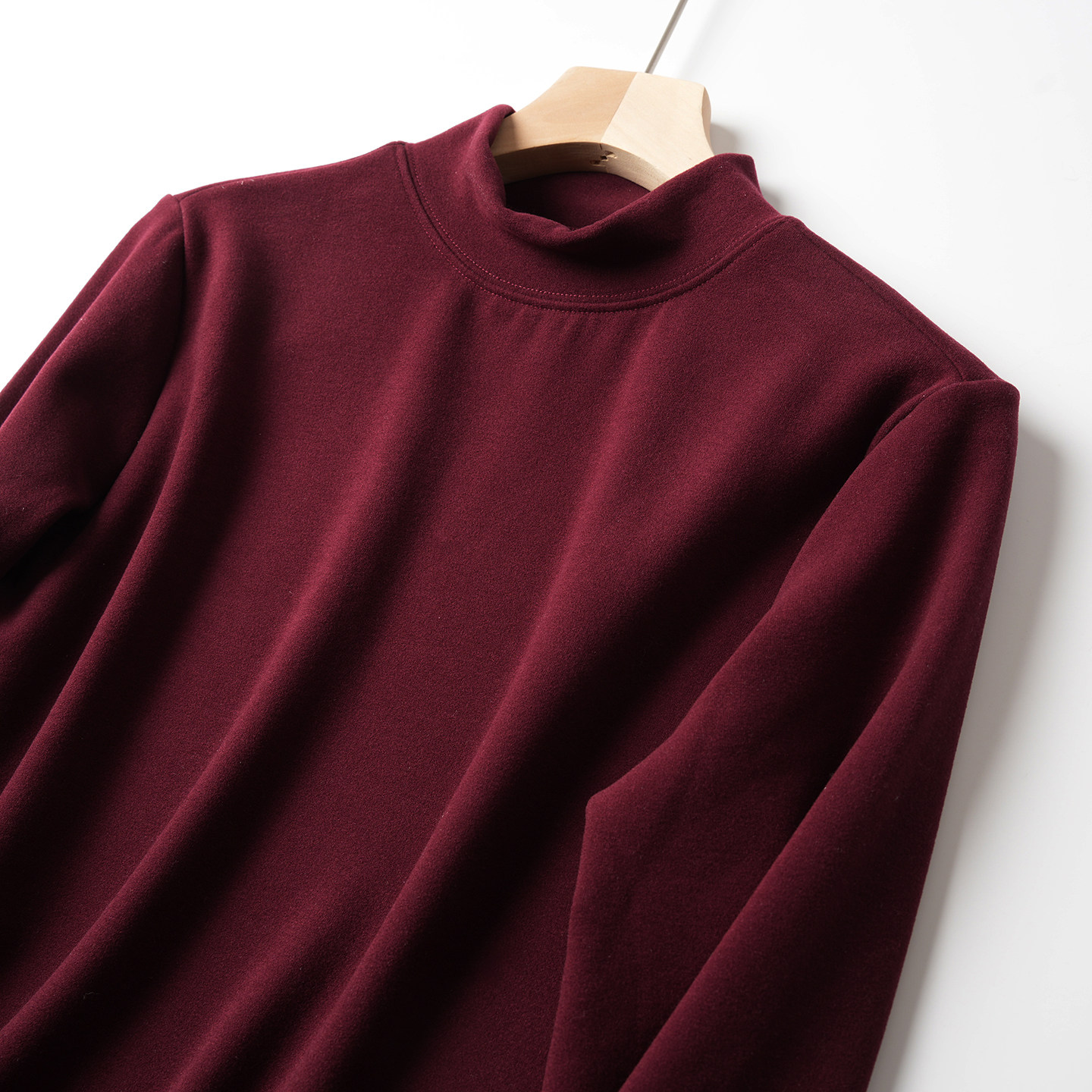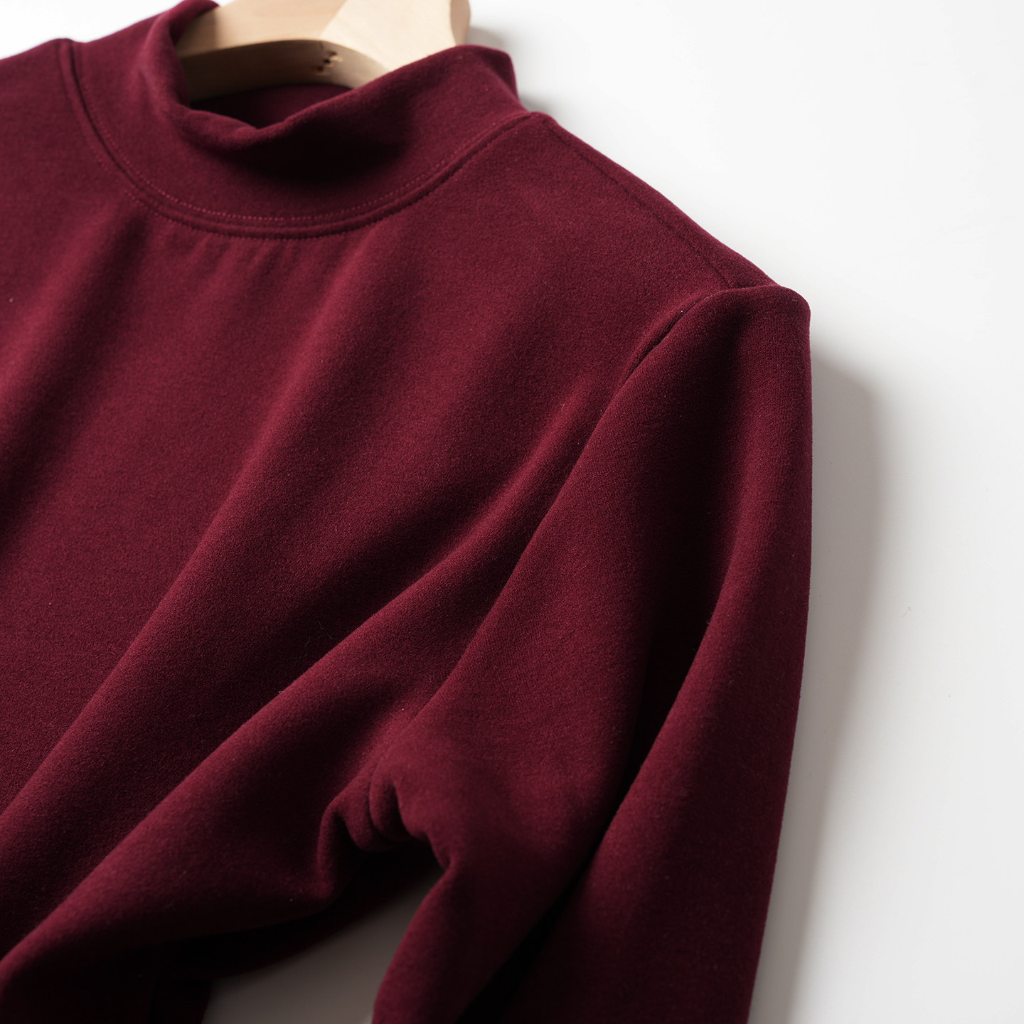 小暖皮300g 女装 女士半高领打底衫 秋冬款 红色保暖长袖 妈妈款