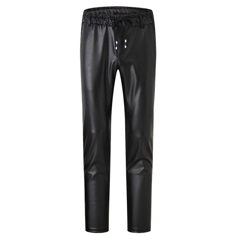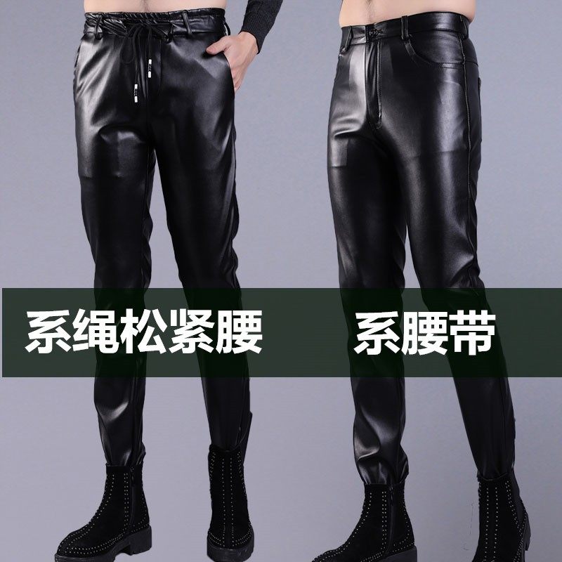 秋季 韩版 薄款 男修身 高弹力青年摩托车男S士防水紧身小脚 皮裤 夏季