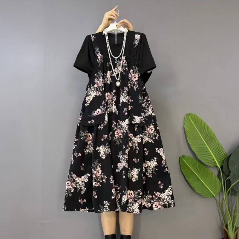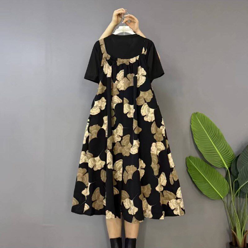新款 短袖 大码 胖妹妹韩版 上衣碎花背带裙气质显瘦套裙 女装 2025春季