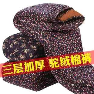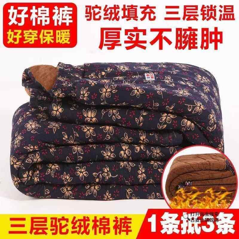 中老年驼绒棉裤 老人三层加厚冬奶奶宽松 男女高腰加绒保暖裤