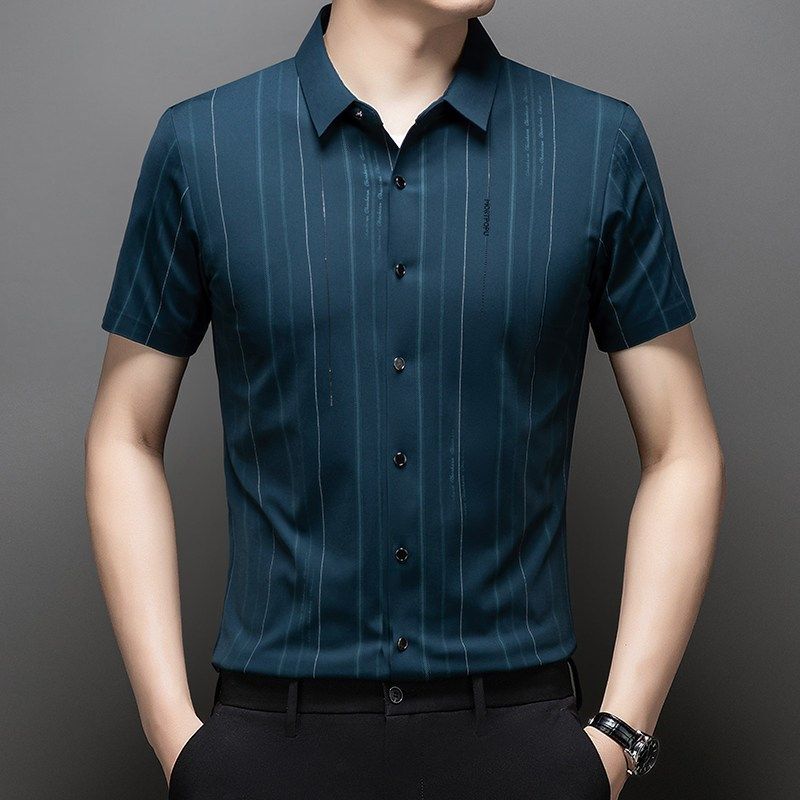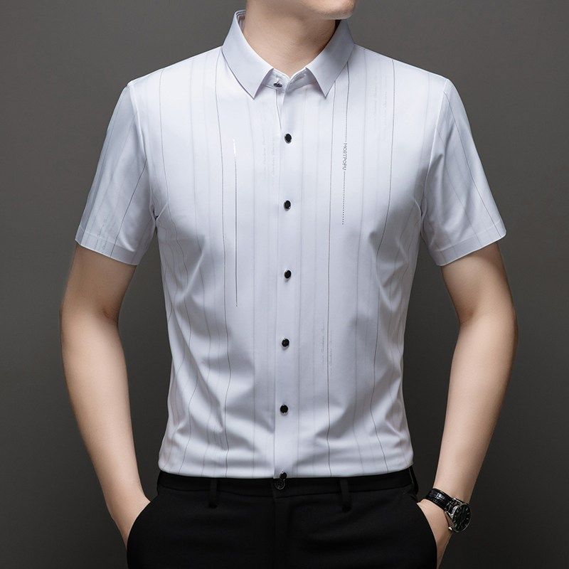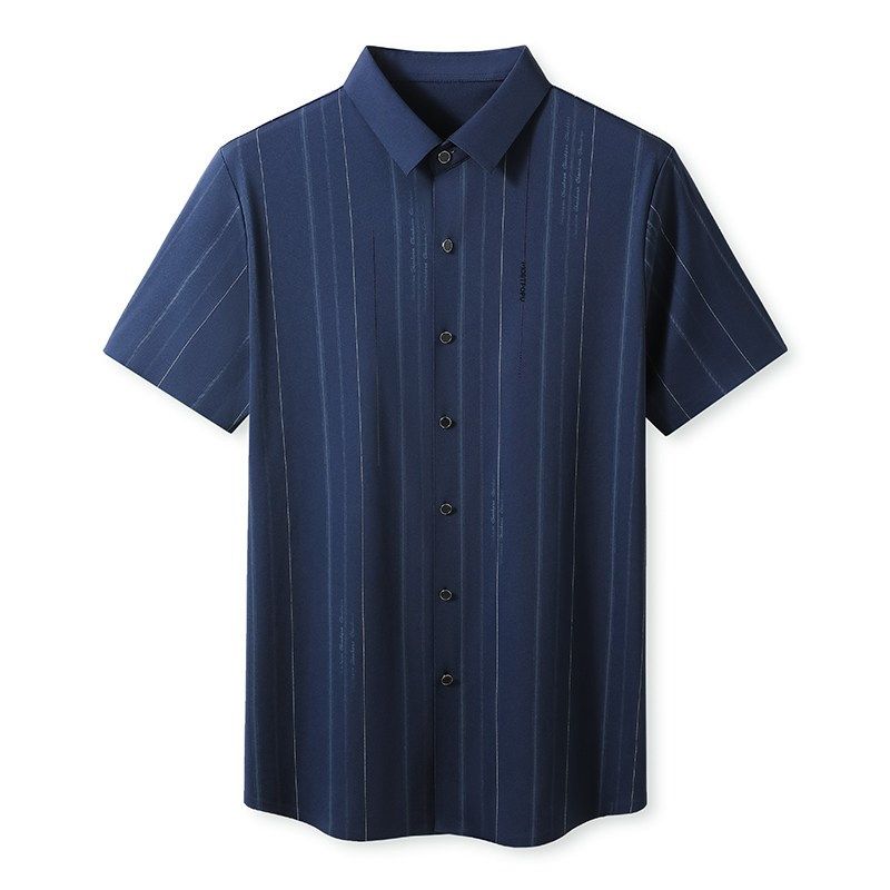新款 无痕冰丝半袖 高档短袖 中年男士 衬衣服潮 商务条纹衬衫 2024夏季