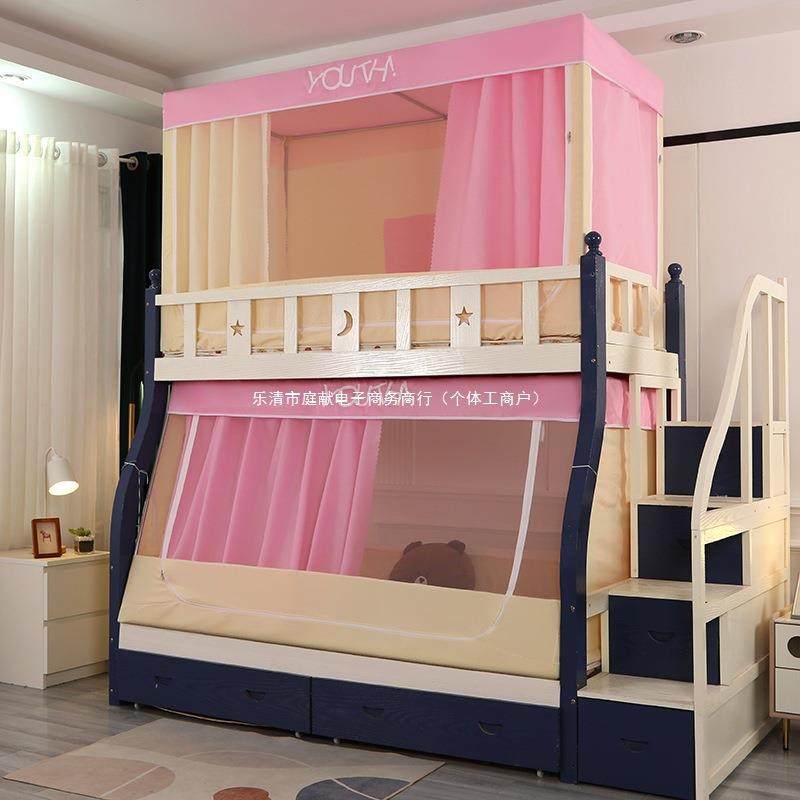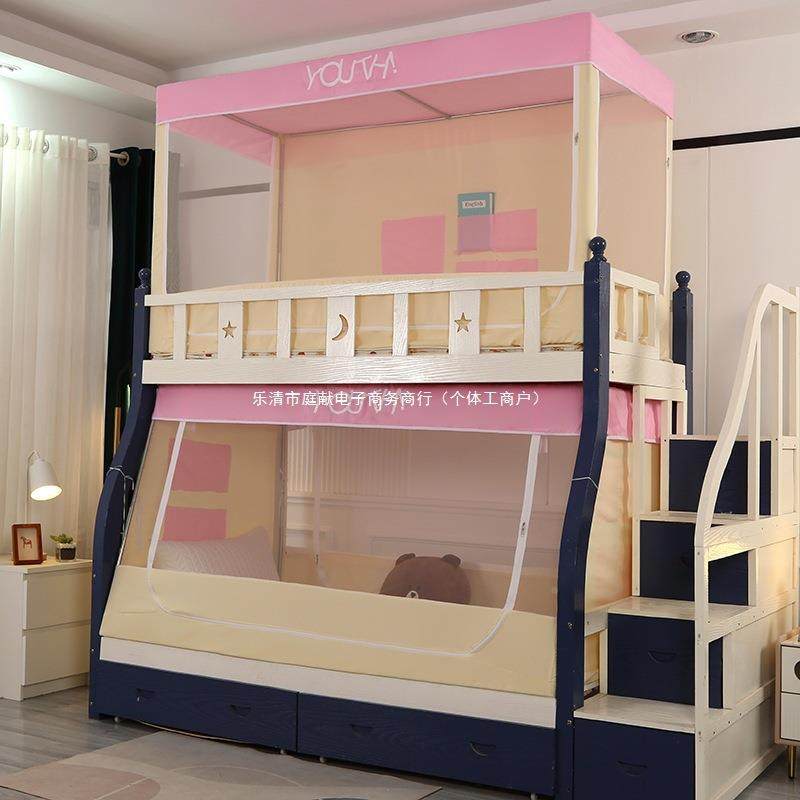 PSB子母防床上下铺蚊帐儿童家用梯形书架小双层遮蚊帐光蚊屋款 奶