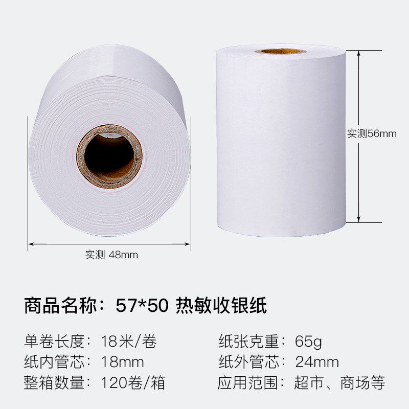 如歌57X50热敏收银纸超市收款 120卷 机57mm小票收银打印纸5750