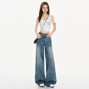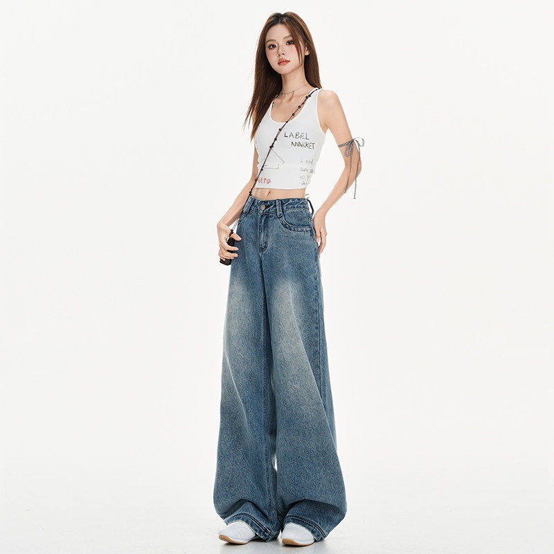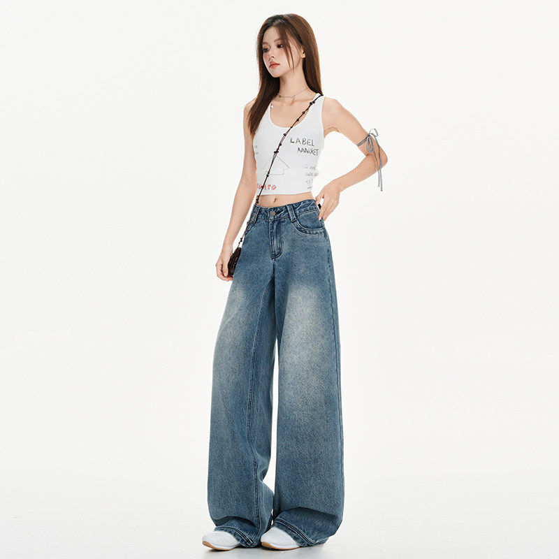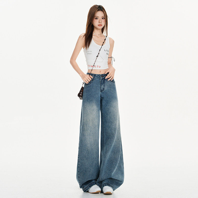 宽松百搭低腰 韩版 日本offcat水洗蓝cleanfit直筒牛仔裤 女早春新款