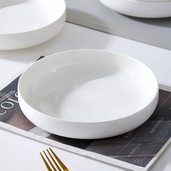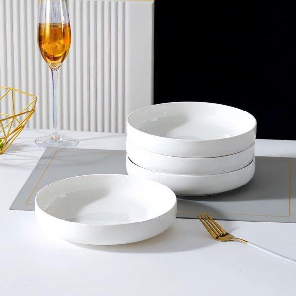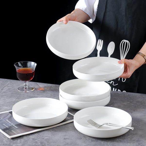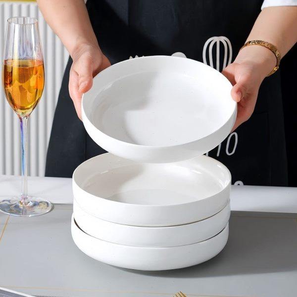 纯白色骨瓷窝深盘家用蒸蛋专用盘圆形陶瓷餐具盘子家用炒菜汤盘