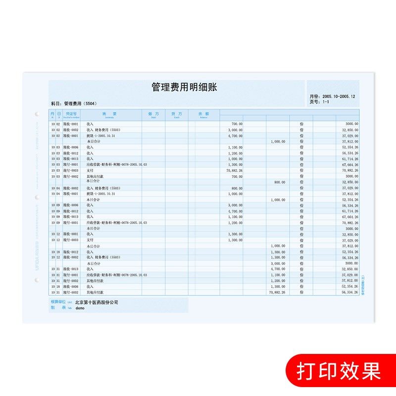A4多栏明细账 210 主 用友表单 297m 主账KZJ106 用友账簿打印纸
