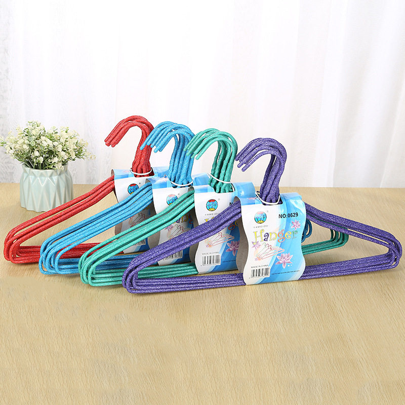 厂家批发浸塑衣架成人花色款 晾衣撑衣架挂衣架日用品地摊无痕衣架