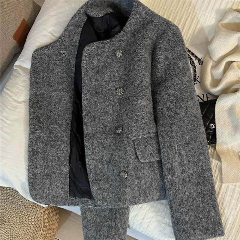 加厚保暖休闲女外套 小香风毛呢短上衣女冬季 2025新款 灰色气质法式