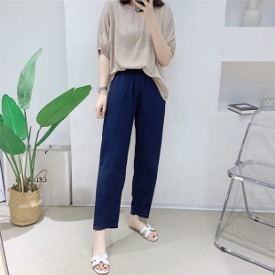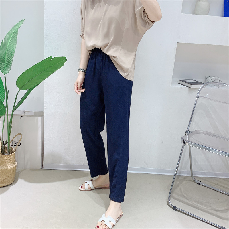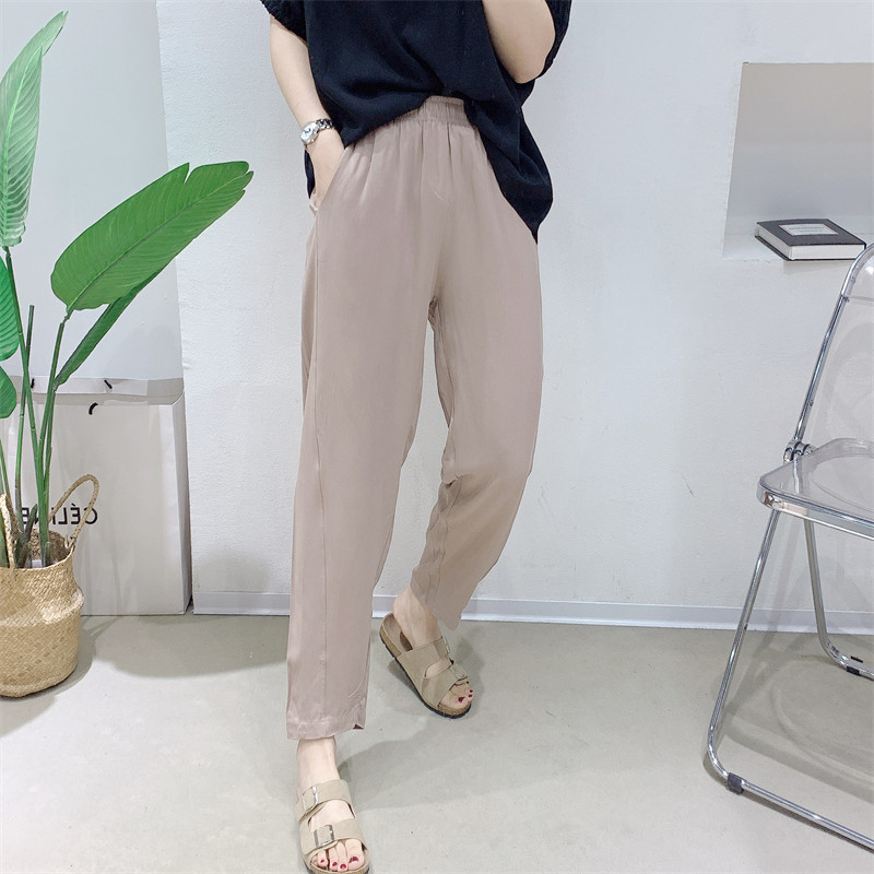 宽松百搭外穿小脚裤 棉绸哈伦裤 纯色人造棉九分裤 薄款 女2022年夏季