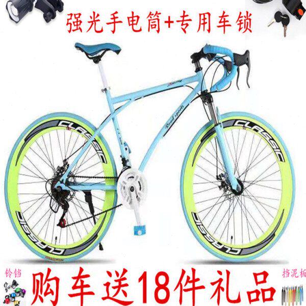 死飞变速自行车男双碟刹弯把减震复古公路赛女式 竞速跑实心胎单车